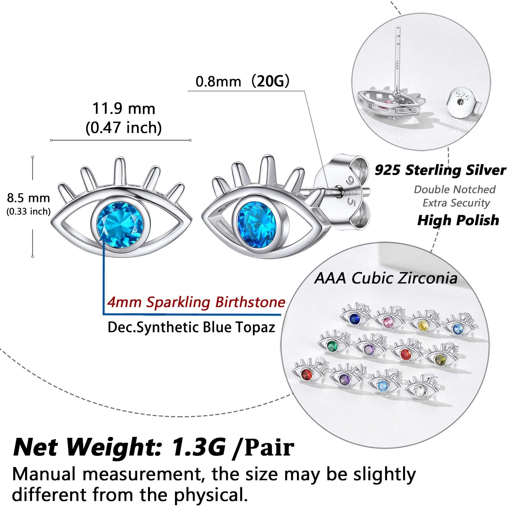 The shiny and beautiful evil eye birthstone stud earrings can increase your charm, give you protection and good luck. The dainty earrings are a good gift choice on Christmas, Mother’s Day, Valentine’s Day, etc.