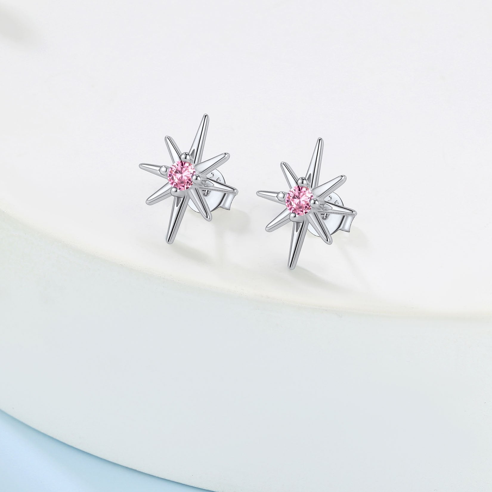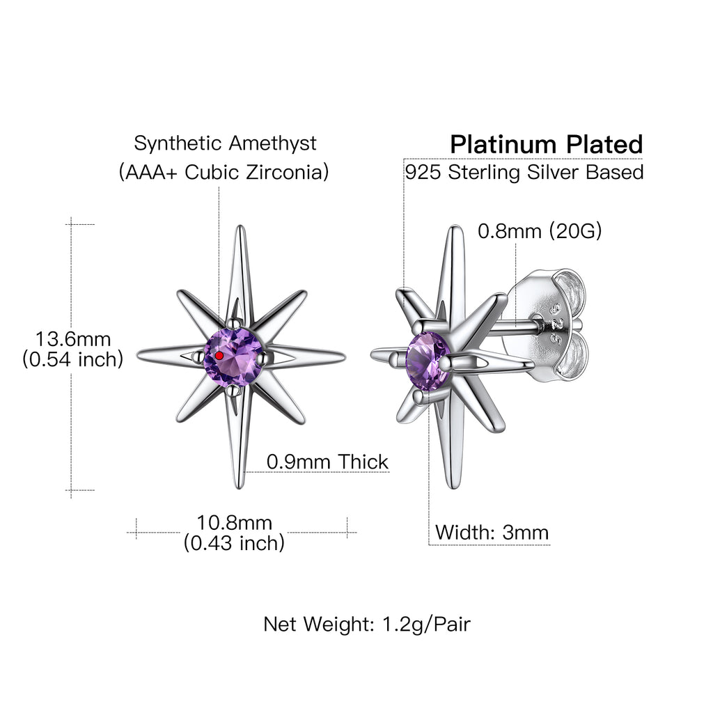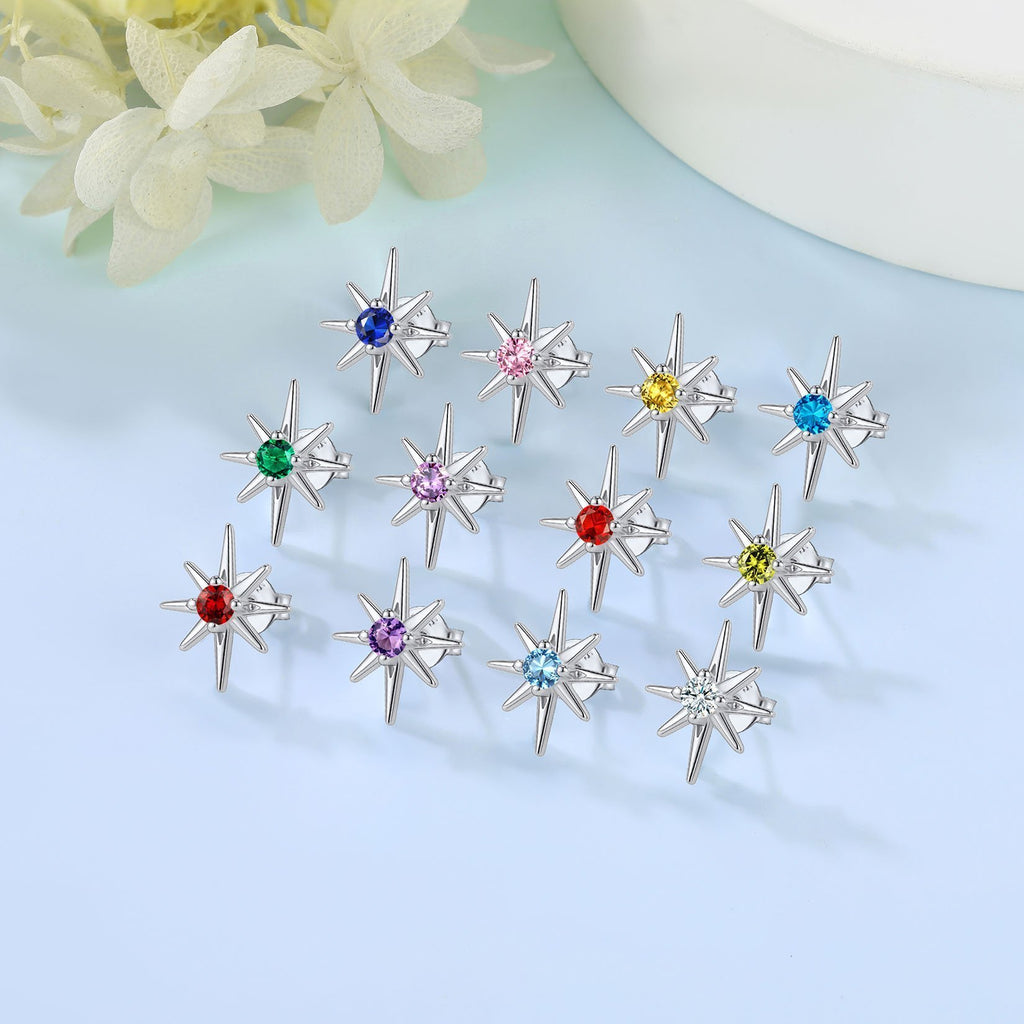 The North star stud earrings feature a brilliant, delicate, faceted round crystal. They are beautiful lightweight earrings for everyday wear. Made of solid 925 sterling silver with a stamp, don't tarnish, or turn your ear green. The birthstone north star stud earrings come with a delicate gift box, ready for giving or receiving.