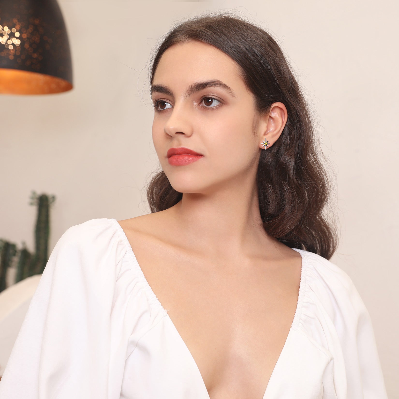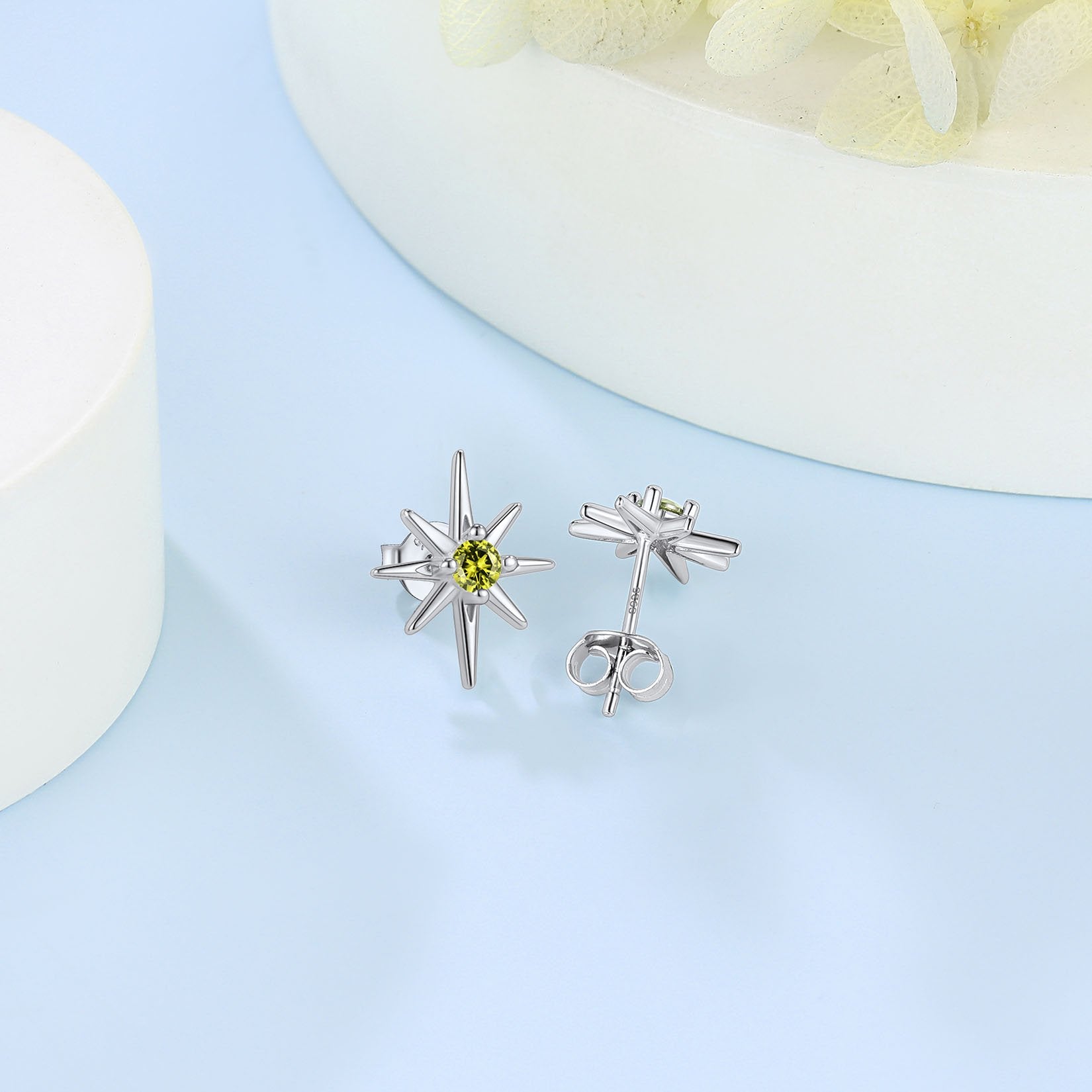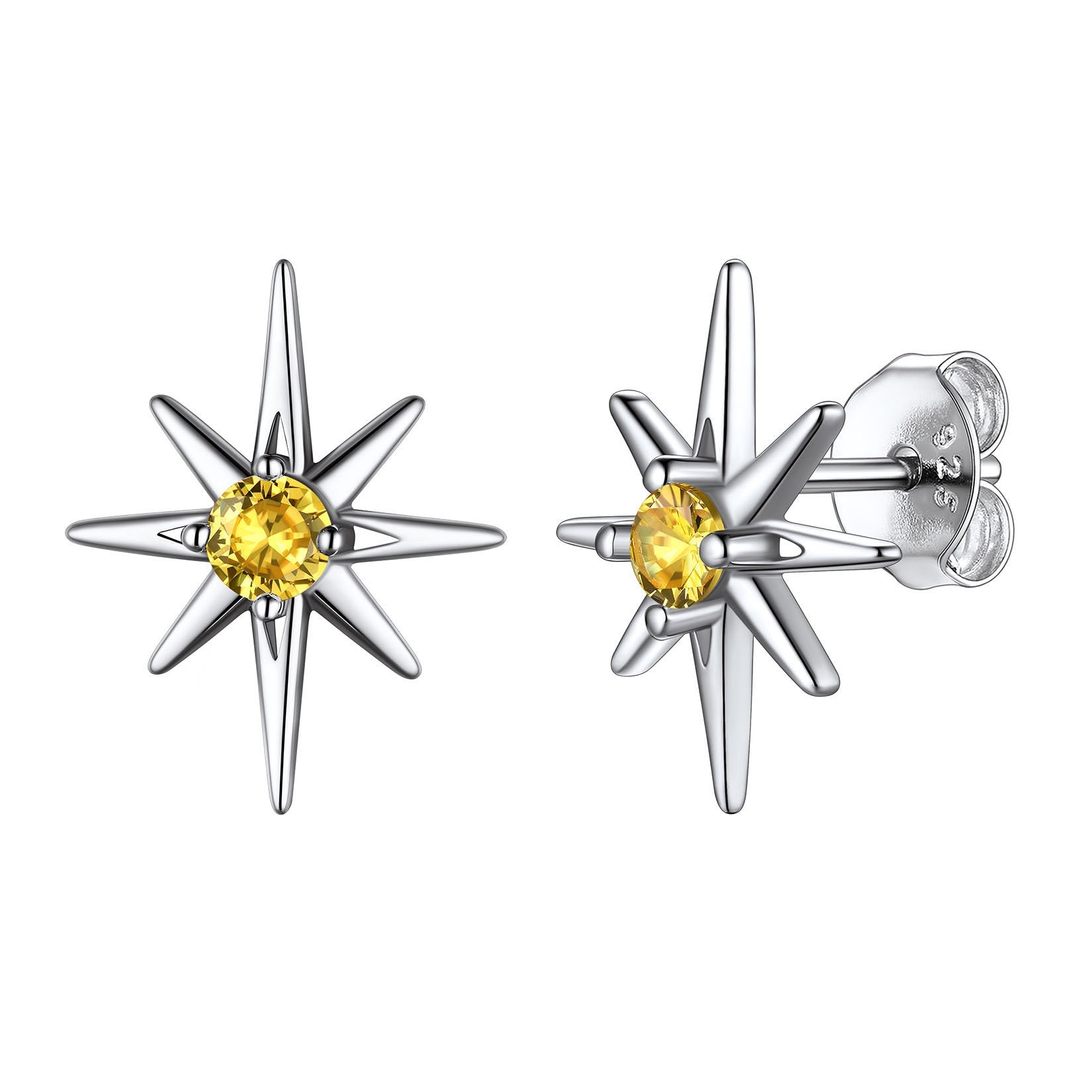 The North star stud earrings feature a brilliant, delicate, faceted round crystal. They are beautiful lightweight earrings for everyday wear. Made of solid 925 sterling silver with a stamp, don't tarnish, or turn your ear green. The birthstone north star stud earrings come with a delicate gift box, ready for giving or receiving.
