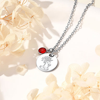 Cute embossed birth flower coin necklace with birthstone, very delicate and classic pendant for women and girls. This kind of minimalist coin necklace is a hit, in fashion and all match with your daily outfit. With meaningful flower hidden message, the disc necklace will deliver your love and blessing.
