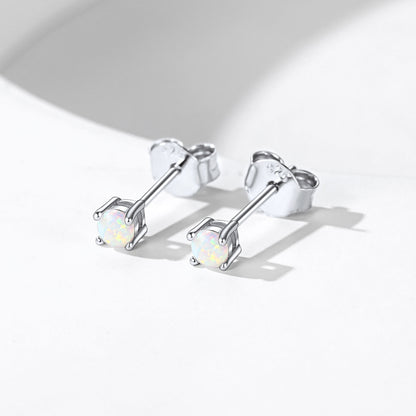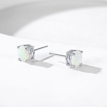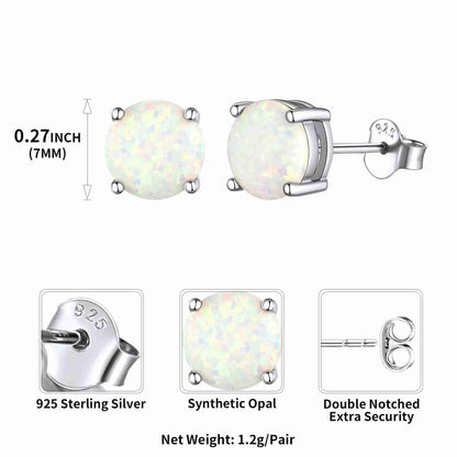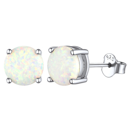 Classic sterling silver round opal stud earrings feature a 4-prong design, with this clean and classy look, which can be worn for a casual everyday look yet it can complement a more ceremonial occasion. Three sizes to meet different needs. These would make a heartfelt gift for someone special on anniversary, wedding, Valentine's Day, Christmas, and birthday.