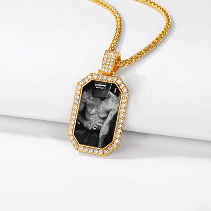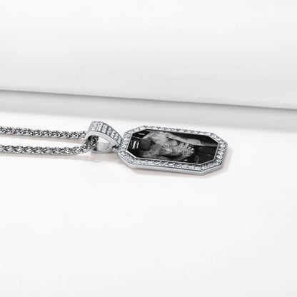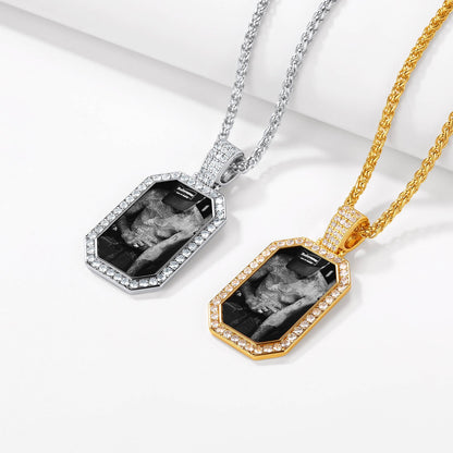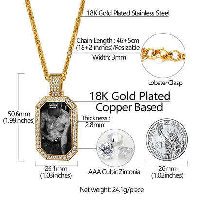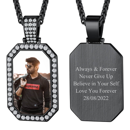 Personalized photo picture necklace for men women,dog tag pendant with cubic zirconia stones, we add a protective layer of glue on the surface to prevent the photo from fading or falling off,customize a unique necklace that reminds you happy moments.