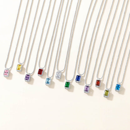 Delicate sterling silver birthstone square sparkle halo necklace for women, halo cubic zirconia necklace, match with bead chain, nickel free, lead free, is safe for sensitive skin. Hand-finished stylish, wear the necklace alone or with the matching earrings, adjustable length, give a voice to your love through unique, hand-crafted jewelry.