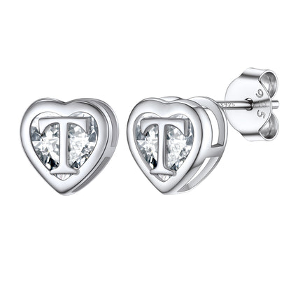 Exquisitos aretes de circonita cúbica con corazón inicial y letras AZ, elaborados en plata de ley 925 con incrustaciones de piedras de circonita cúbica AAA+, hipoalergénicos, personalízalos con la inicial de tu ser querido para que sea un regalo único para celebrar tu amor.