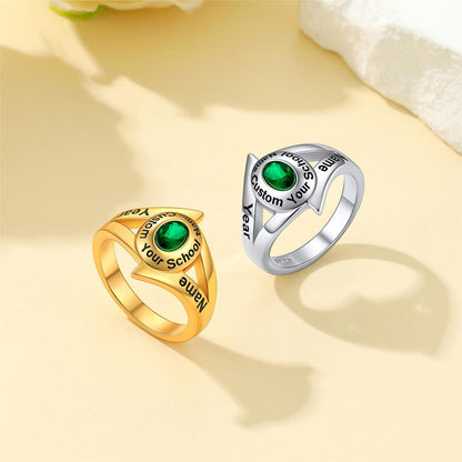 Anillo de graduación único y significativo: Un hermoso anillo que alegrará tu graduación y la de tus compañeros. Puedes personalizarlo con tu nombre, el nombre de tu escuela y el año de graduación, convirtiéndolo en una joya única. Con una piedra de nacimiento que representa tu color único, será una pieza significativa para ti y toda la clase. Este impresionante anillo de graduación es la manera perfecta de conmemorar tus logros académicos.