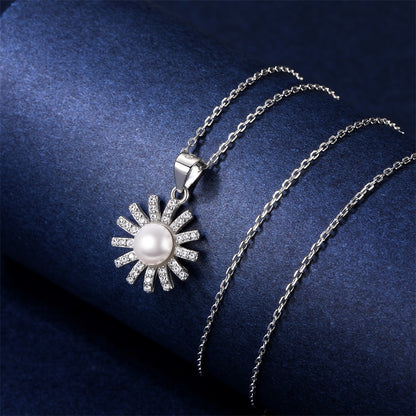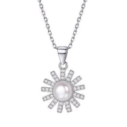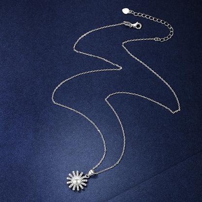 Encantador collar con colgante de perla solar de circonita cúbica para mujer, hecho de plata de ley 925 con perla sintética de alta calidad incrustada, libre de níquel y plomo, seguro para piel sensible. Añade este magnífico collar a tu colección de joyas y combina con tus diferentes necesidades de decoración.