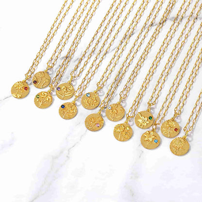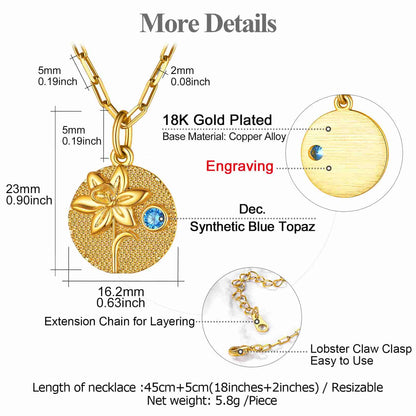 Collier exquis avec disque de fleurs en relief et pierre de naissance, pendentif délicat et classique pour femmes et filles. Les plus beaux pétales prennent vie sur ce collier de fleurs de naissance, associé à votre pierre de naissance. Exclusif et significatif, chacune des 12 fleurs possède une signification particulière pour immortaliser ces moments inoubliables.