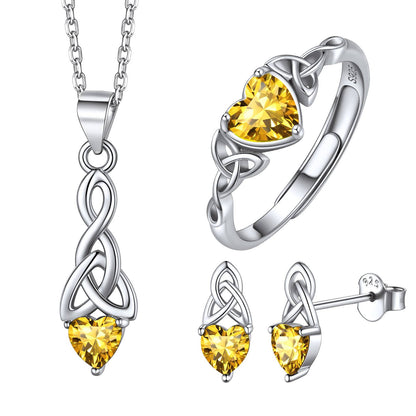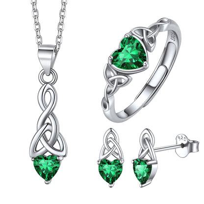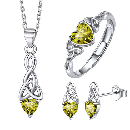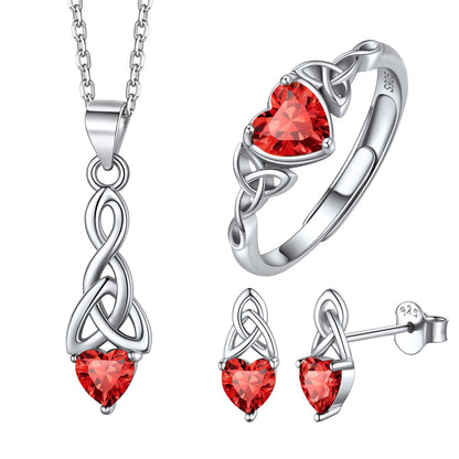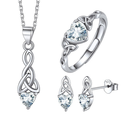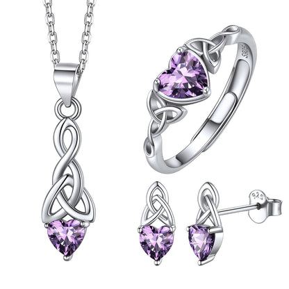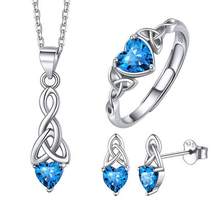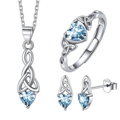 Cette parure de bijoux avec pierre de naissance et nœud celtique de la Trinité est un accessoire parfait en toute occasion, apportant élégance et sophistication à un jean décontracté ou à une robe de soirée. Son style intemporel en fait un incontournable de toute garde-robe.