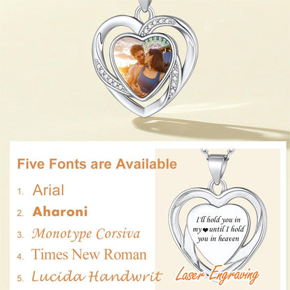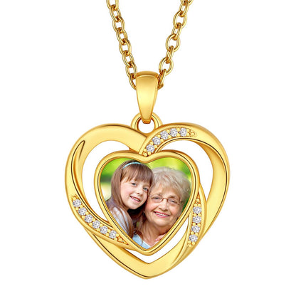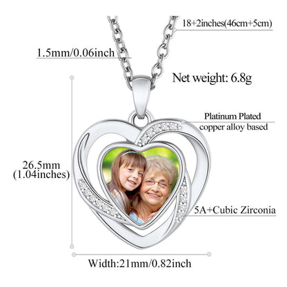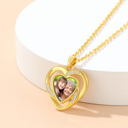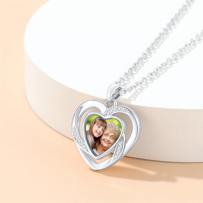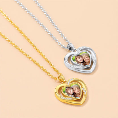 Personnalisez une photo au recto et gravez votre nom, votre date de naissance et un texte significatif au verso pour immortaliser votre amour. Symbole d'amour et de connexion, ce collier photo cœur dans cœur est orné d'un magnifique pendentif cœur, abritant un petit cœur, symbole de votre amour profond et de votre promesse à vos proches.