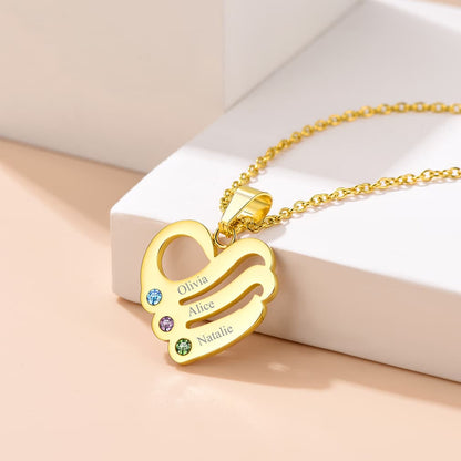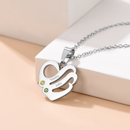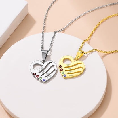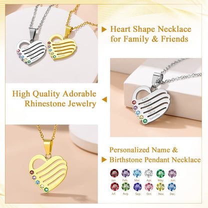 Personalized heart pendant necklaces with names and birthstones. It could be a memorial necklace,a mother child jewelry, mother daughter necklace, grandmother necklace, mothers day necklace, perfect personalized birthstone gifts for mom or treat yourself, as well as a heartfelt anniversary, birthday, or mother’s day gifts for women, dear mom, grandmother or your wife.