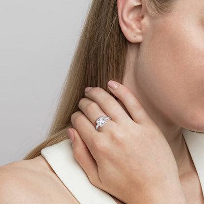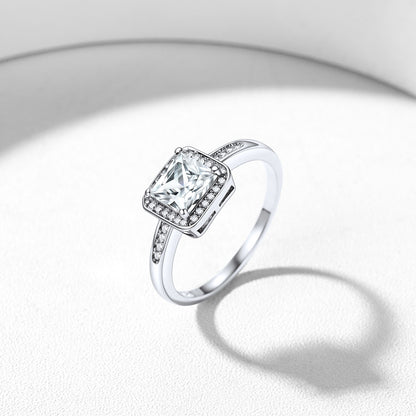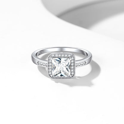 Sparkling sterling silver square halo cubic zirconia round halo engagement ring is a good alternative to diamond ring , its elegant and classic design never goes out of style. On wedding, engagement, Valentine's Day, party, birthday or daily, this ring will always give you a great look, and you will always be fashionable.