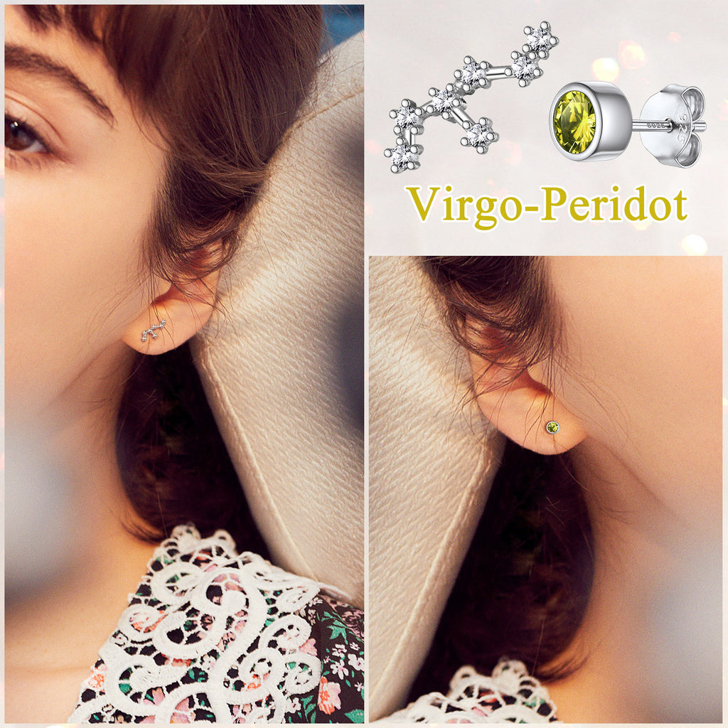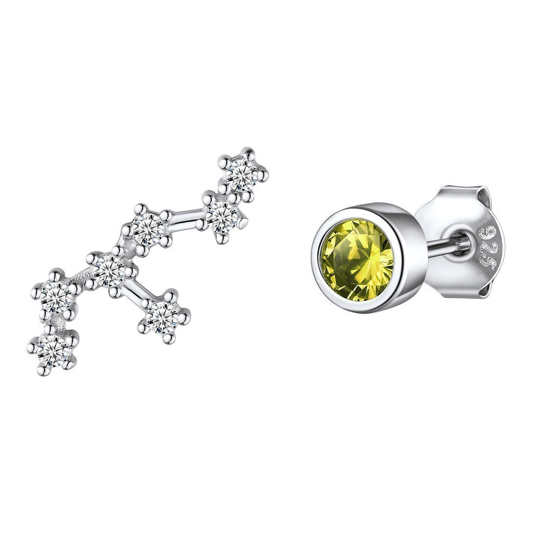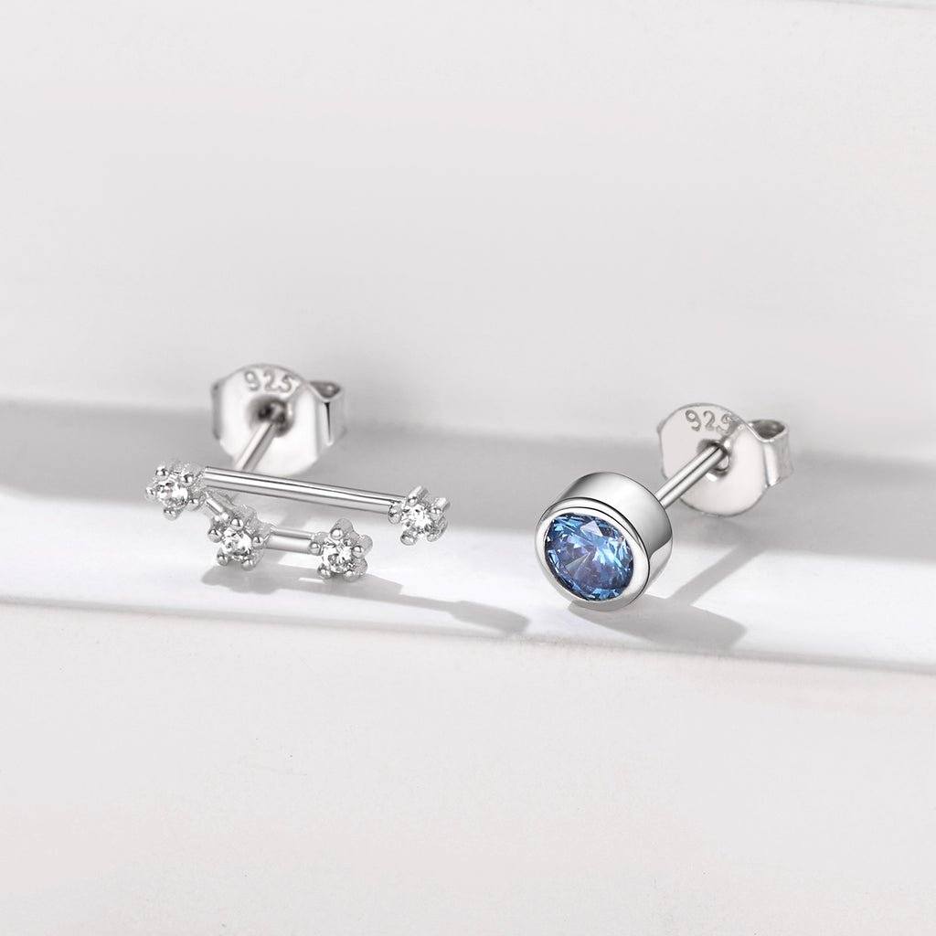 925 Sterling Silver Birthstone Zodiac Constellation Stud Earrings