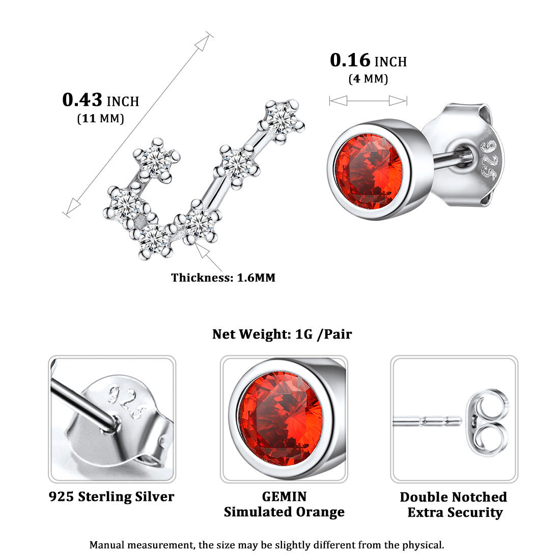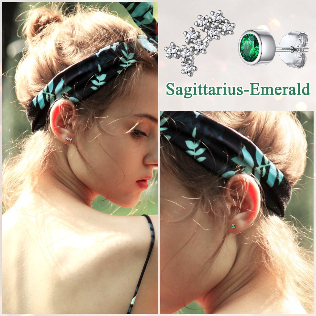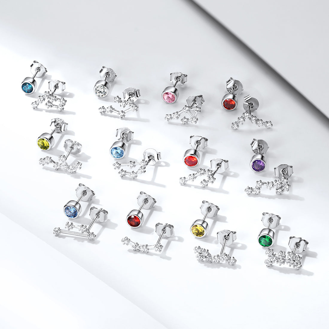 925 Sterling Silver Birthstone Zodiac Constellation Stud Earrings