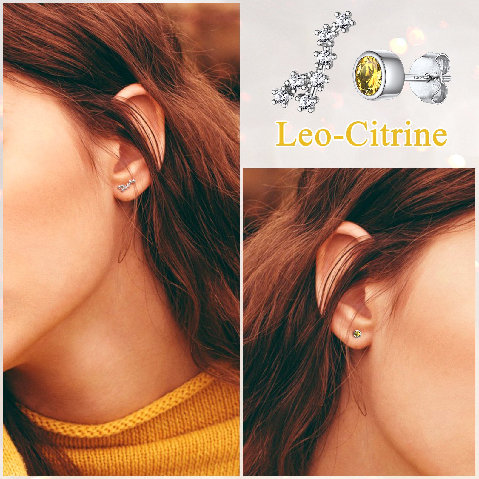 The birthstone constellation earrings are a special combination of cosmic and personalized jewelry to show your personality. This set of earrings is asymmetrical and includes a birthstone earring and a zodiac earring. Each birthstone represents a unique astrological sign that adds a personal touch and reflects the wearer's individuality and inner strength. This charming design will make you stand out in the crowd.