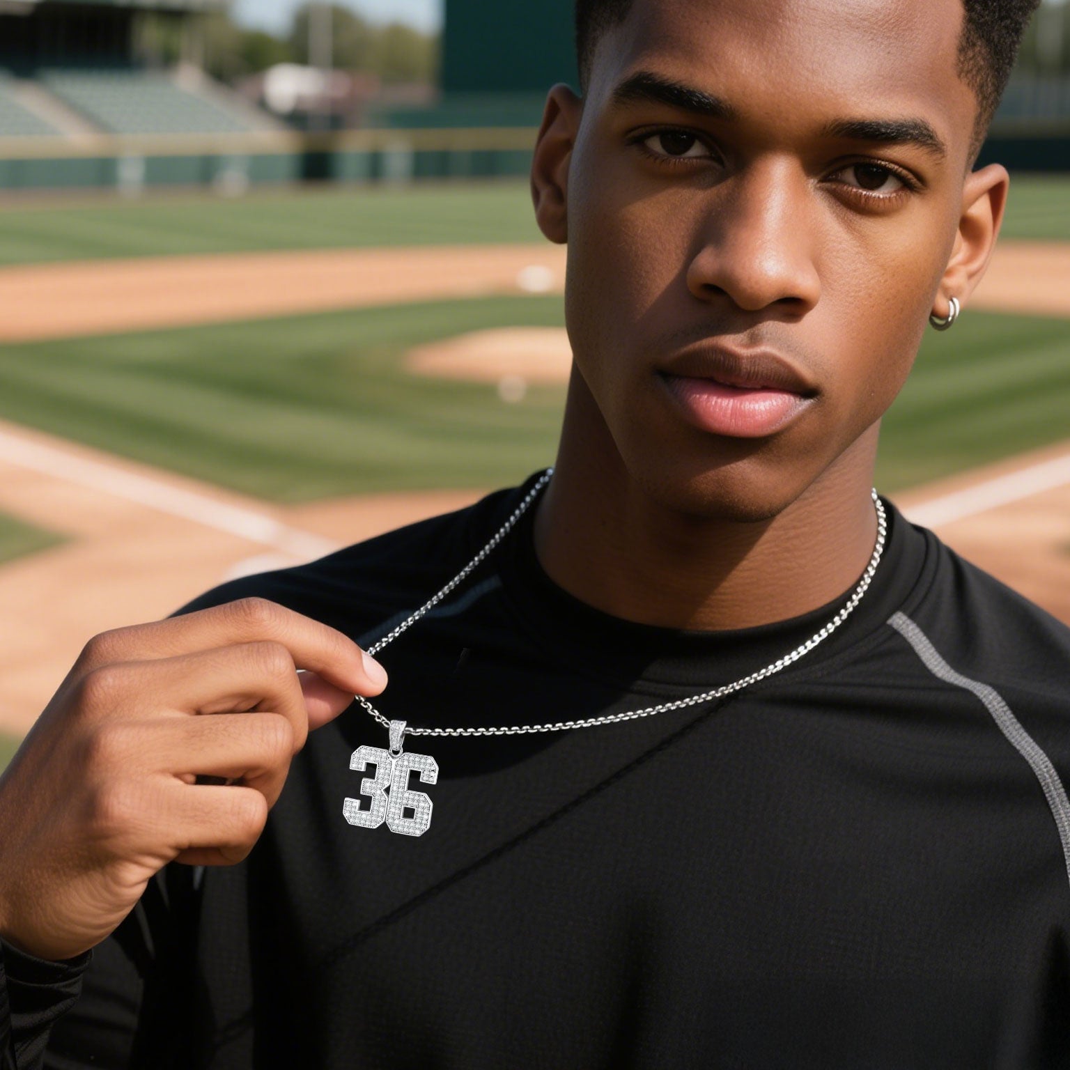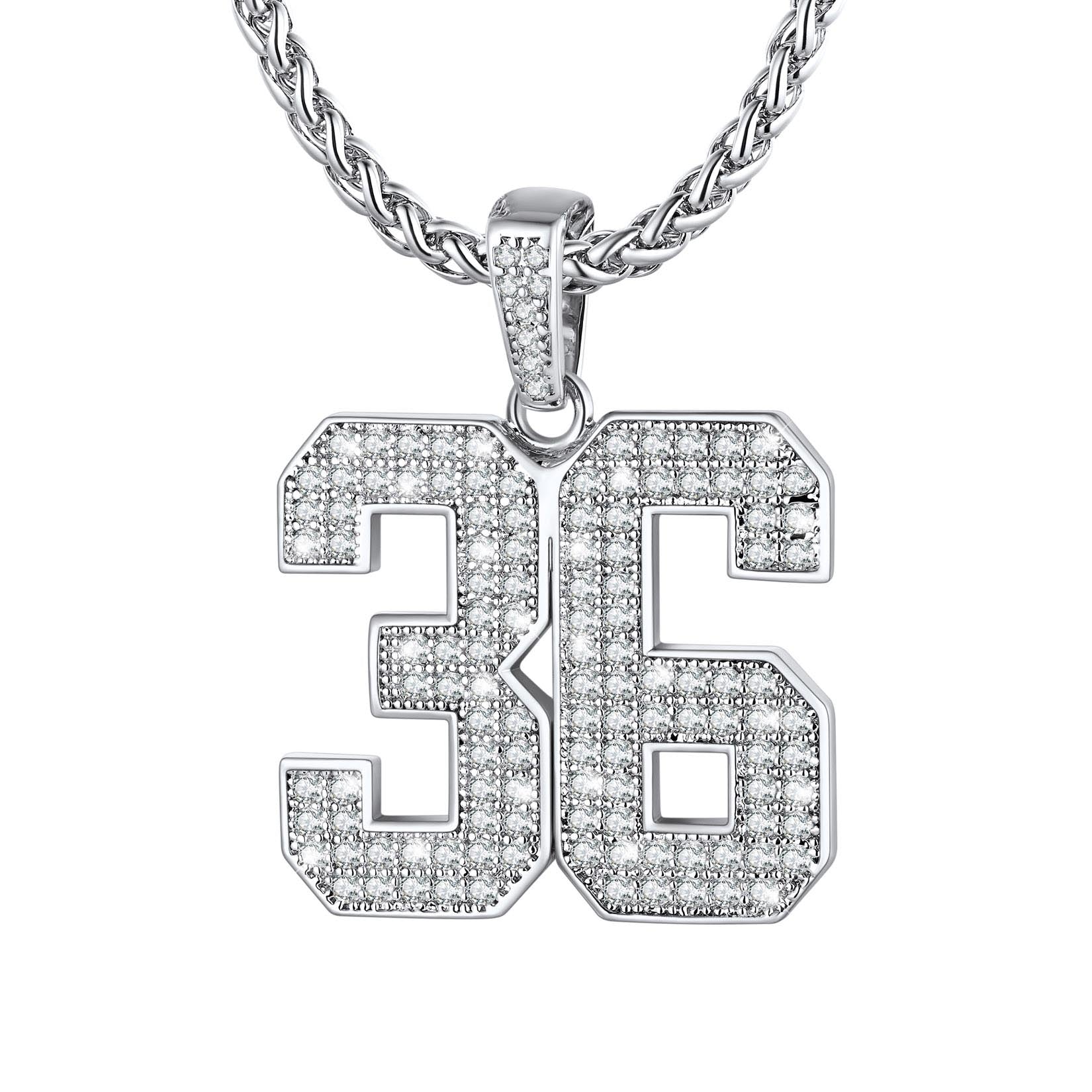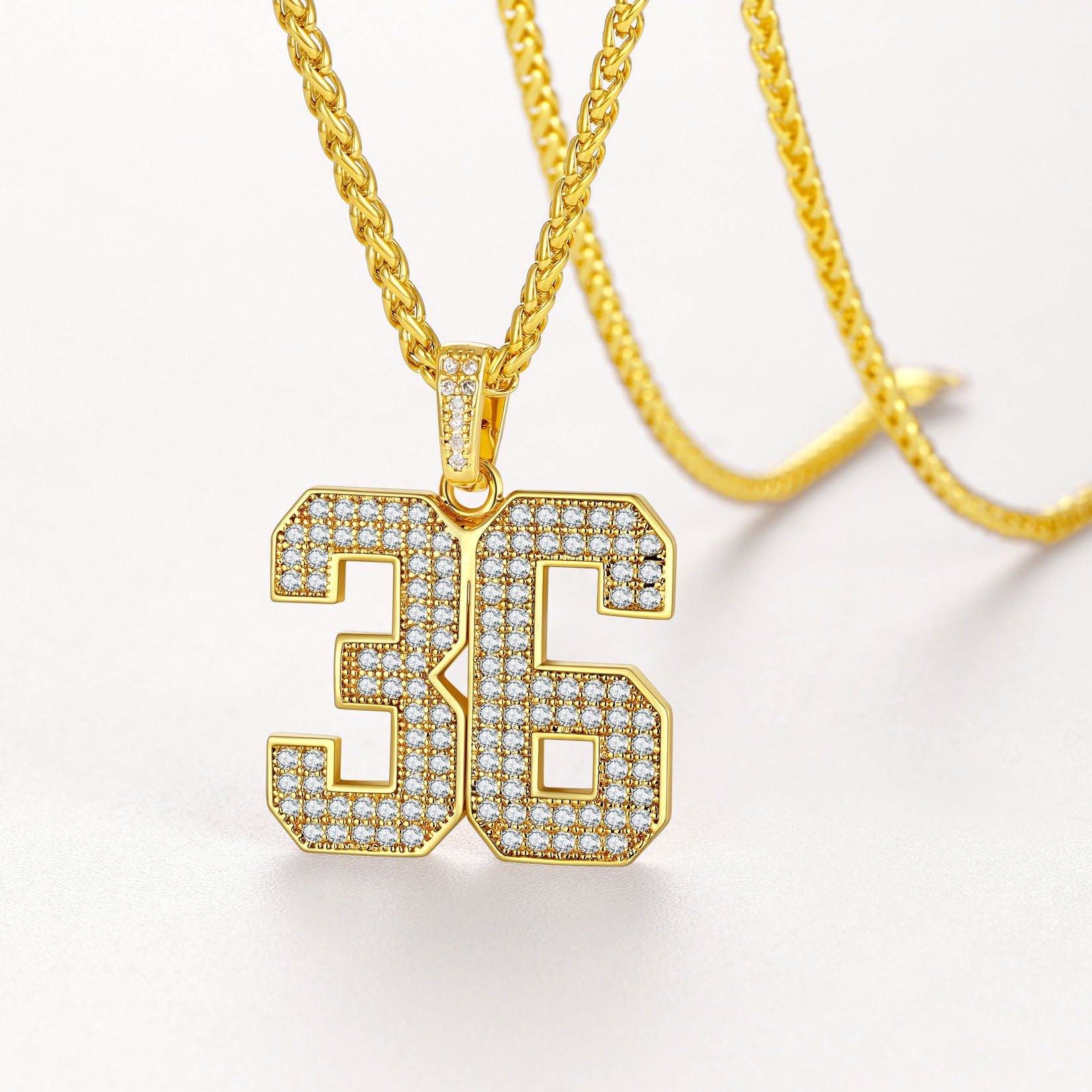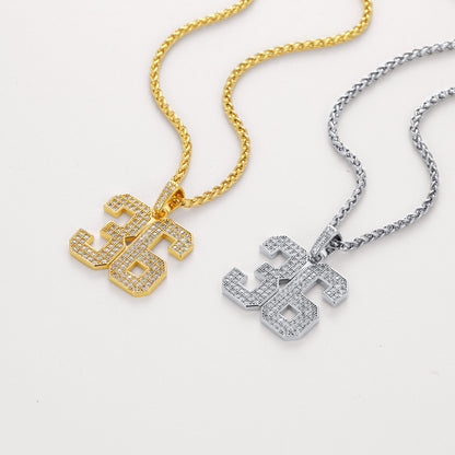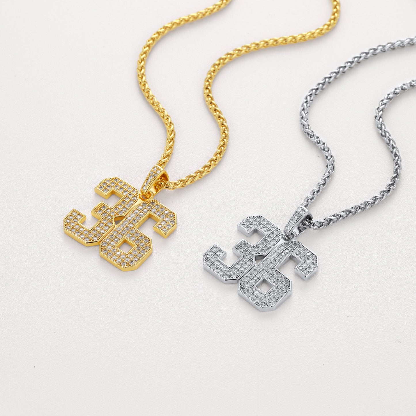 This sparkling number necklace with fully CZ inlaid is a hit, and will show off your hip hop style and sports jersey. Premium pave setting handwork with care and precision, the cubic zirconia gem stones will not get loose and fell out. Simple and Stylish jewelry will add bling and shine to your look. Now click "Customize Now" to make the unique cubic zirconia number necklace.