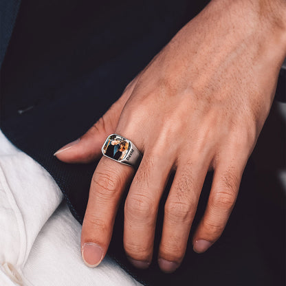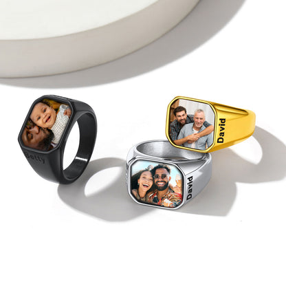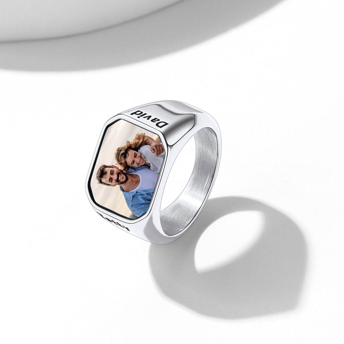 This personalized picture ring can be customized with memorial photo and names on the band. This unique photo name signet ring is a perfect personalized picture gifts for men or treat yourself, even as a memorial ring showing your love to the special one in your life without saying a word!