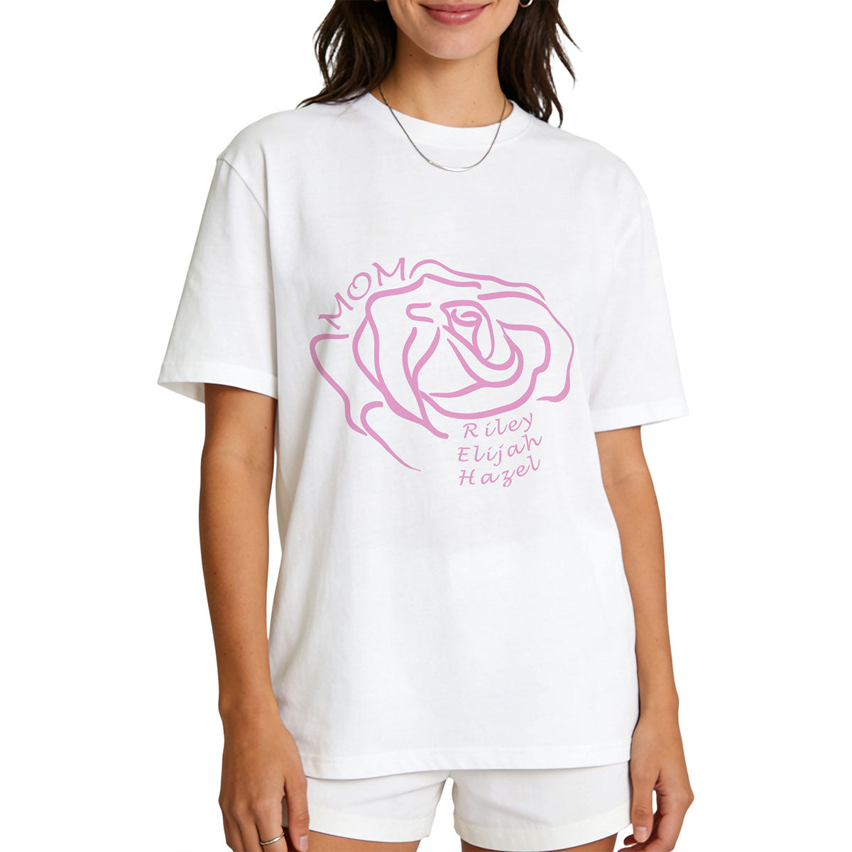Personalized this rose T shirt with Kids' Names: Customizable with your children's names, family's names or friends names, creating a unique and meaningful keepsake. This Custom name t shirt for mom is a heartfelt gift that’s sure to be cherished and worn with love. From XS to XXXL, our personalized shirts are perfect fit to the most body types and shapes.