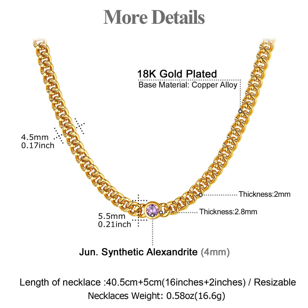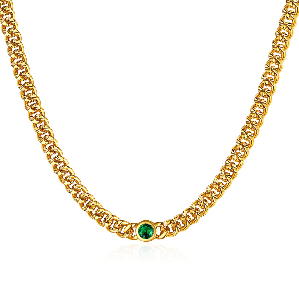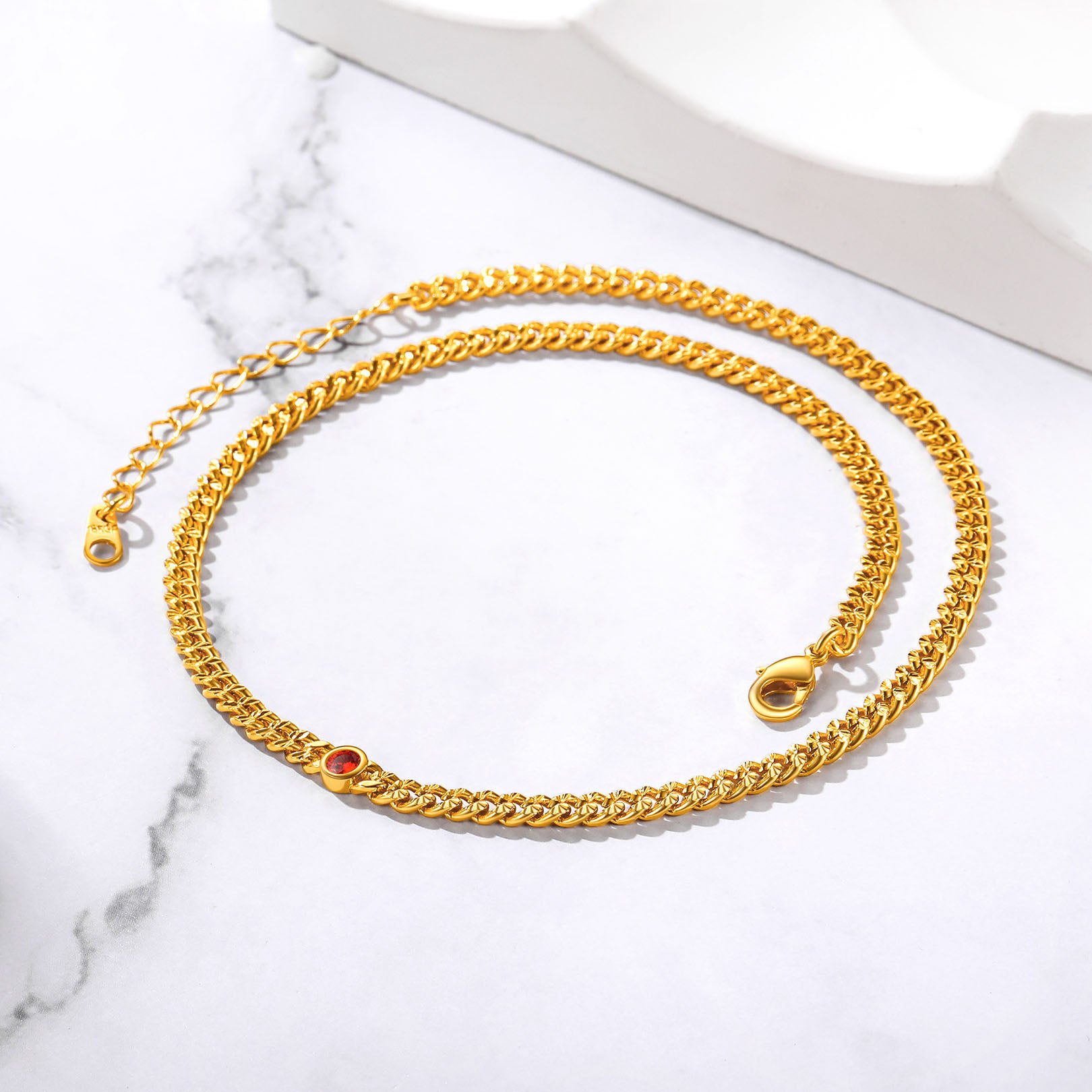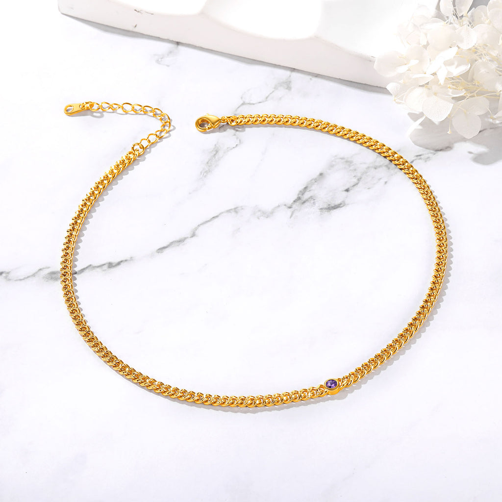 Gold Cuban Link Chocker Birthstone Necklace For Women