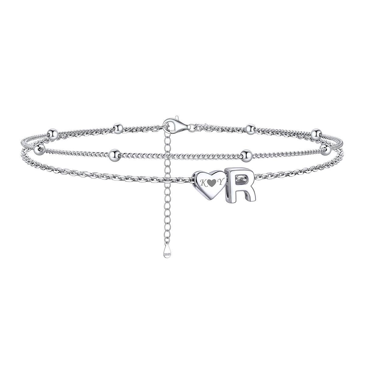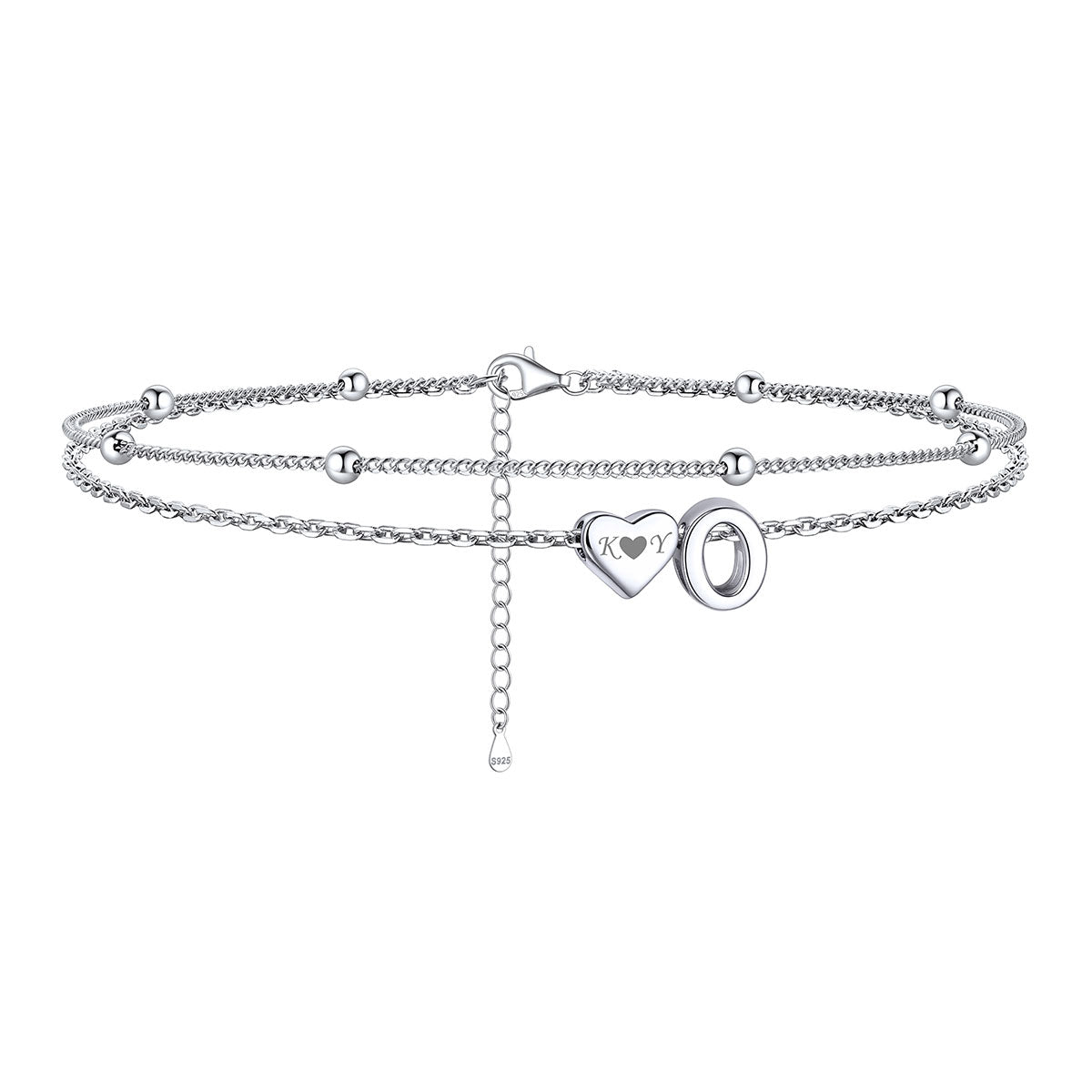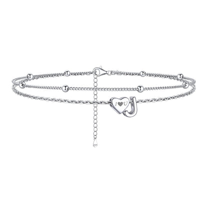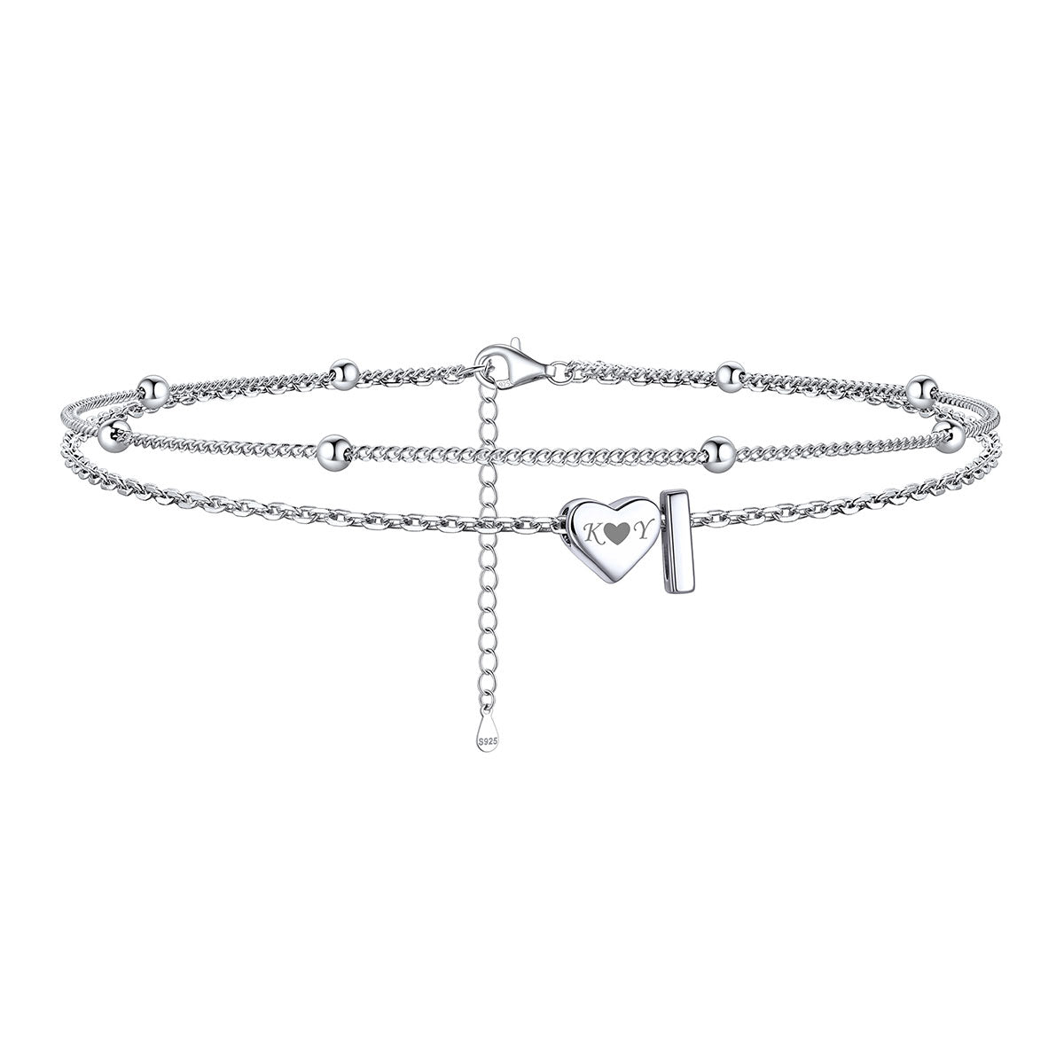 Make a statement with our beautifully layered initial heart anklet. Crafted with high-quality hypoallergenic sterling silver, this initial ankle bracelet offers a perfect blend of personalization and timeless elegance for any occasion.