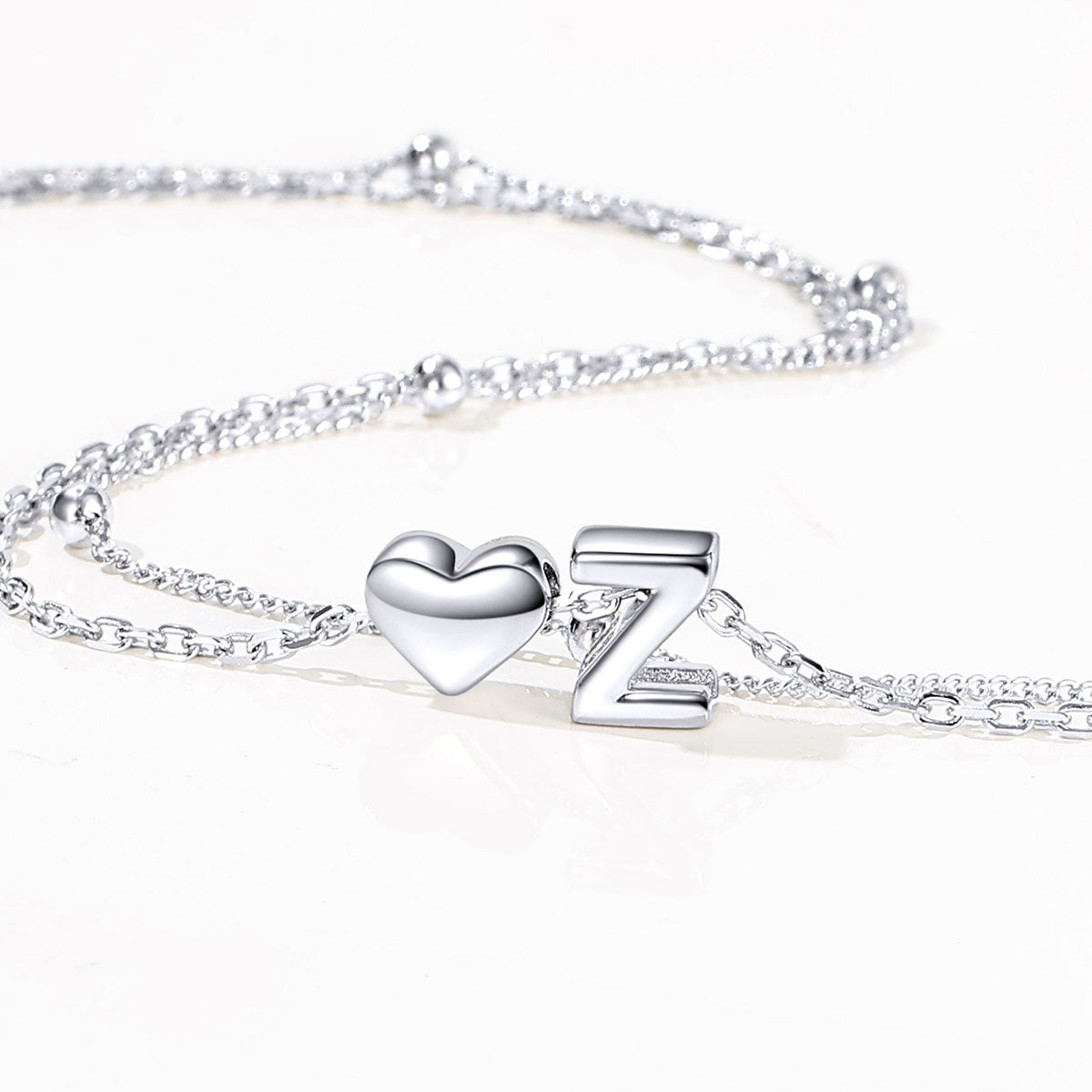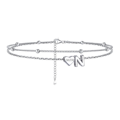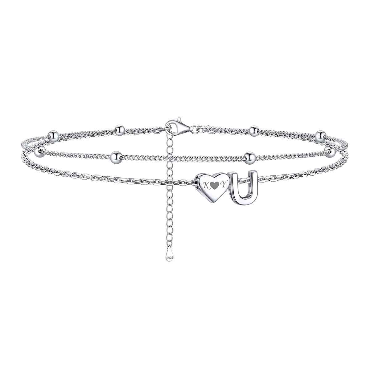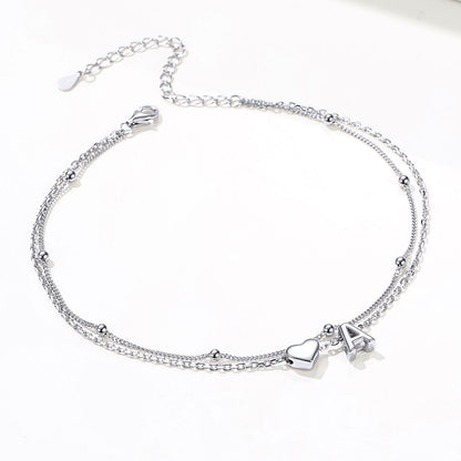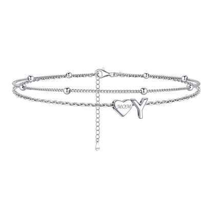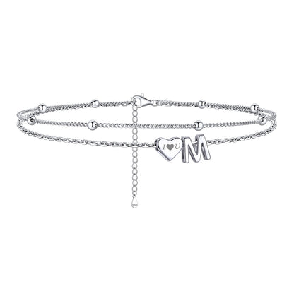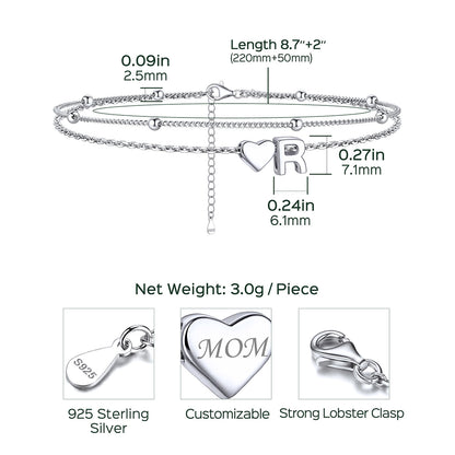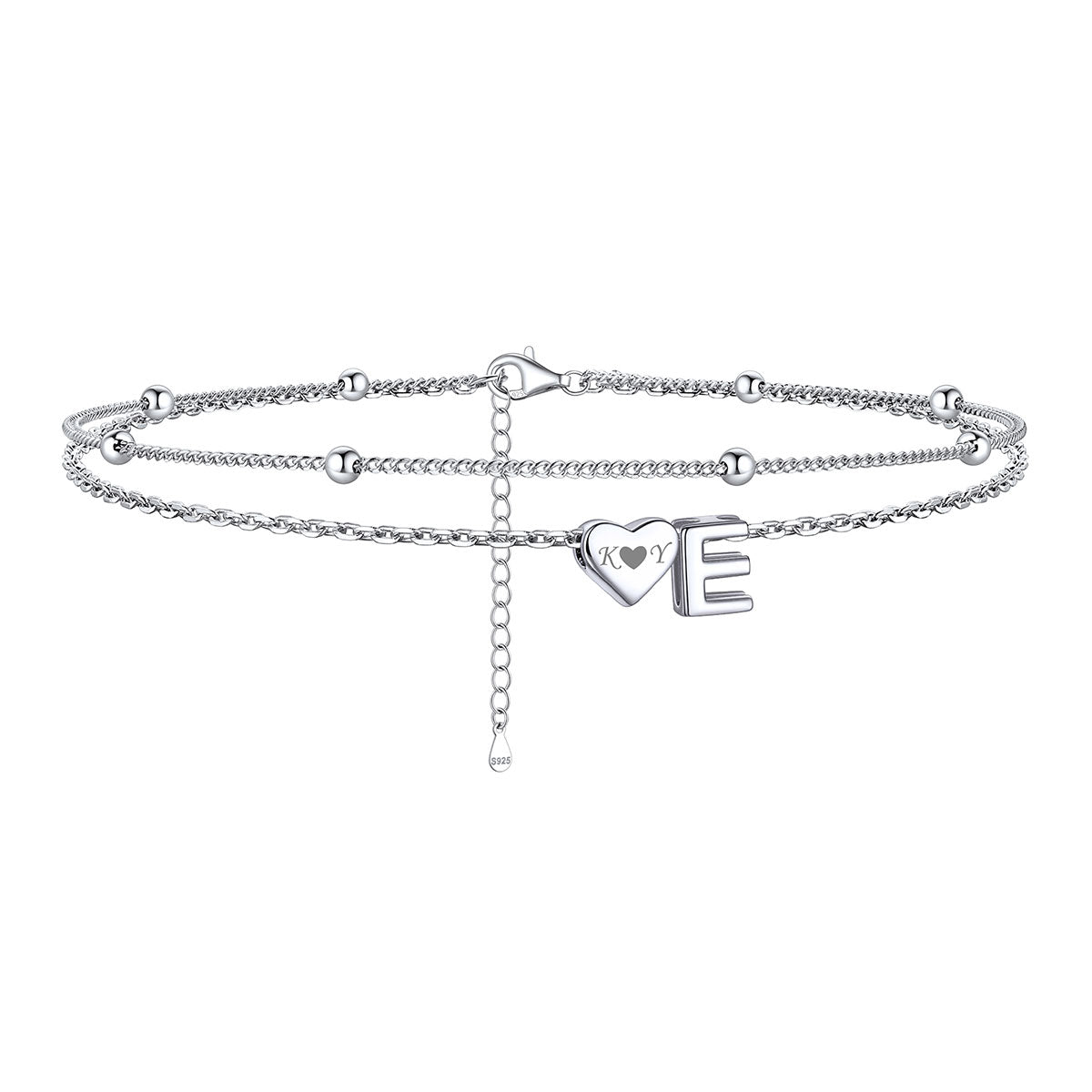Make a statement with our beautifully layered initial heart anklet. Crafted with high-quality hypoallergenic sterling silver, this initial ankle bracelet offers a perfect blend of personalization and timeless elegance for any occasion.