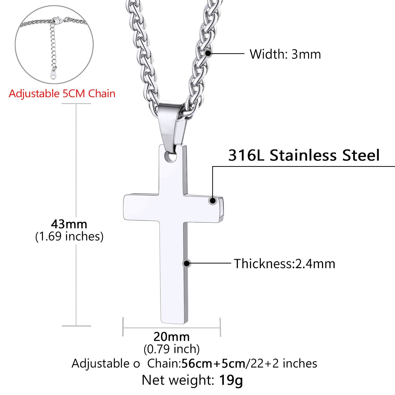 Personalize this classic cross pendant with a unique engraving for a meaningful gift, perfect for a special occasion. Crafted from durable 316L Stainless Steel, this solid stainless steel engraved cross necklace resists rust and tarnish exceptionally well. Wear it proudly to express your dual faiths.