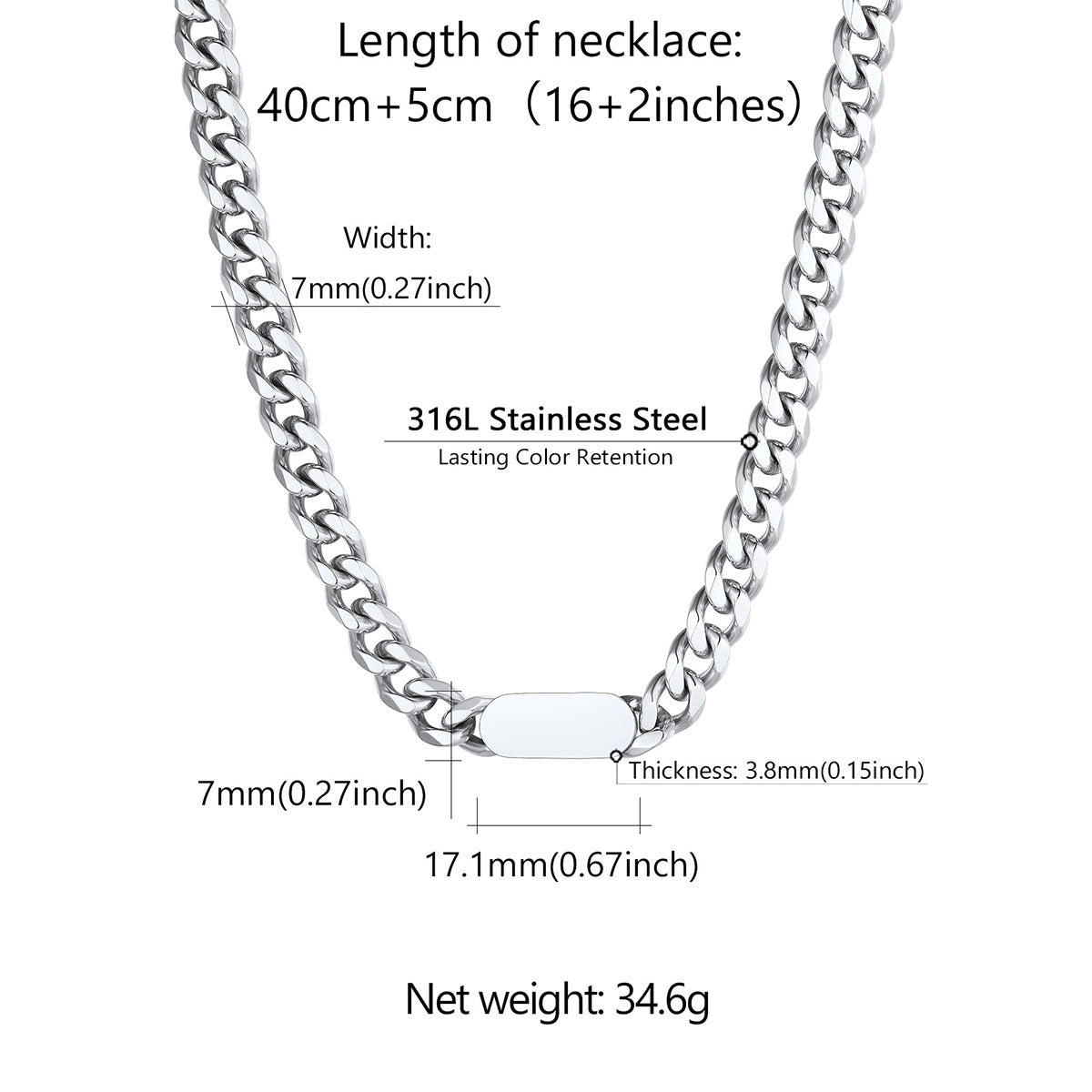 Thick and Chunky Cuban Link Chain Necklace, with gorgeous and attractive appearance, can be customized with names, significant dates, or meaningful phrases to make it uniquely yours. Crafted from durable stainless steel, this custom chain choker necklace includes a secure lobster clasp for easy wear. Wear it Alone, or Layer Well with Your Other Jewelry for a Stylish Statement.