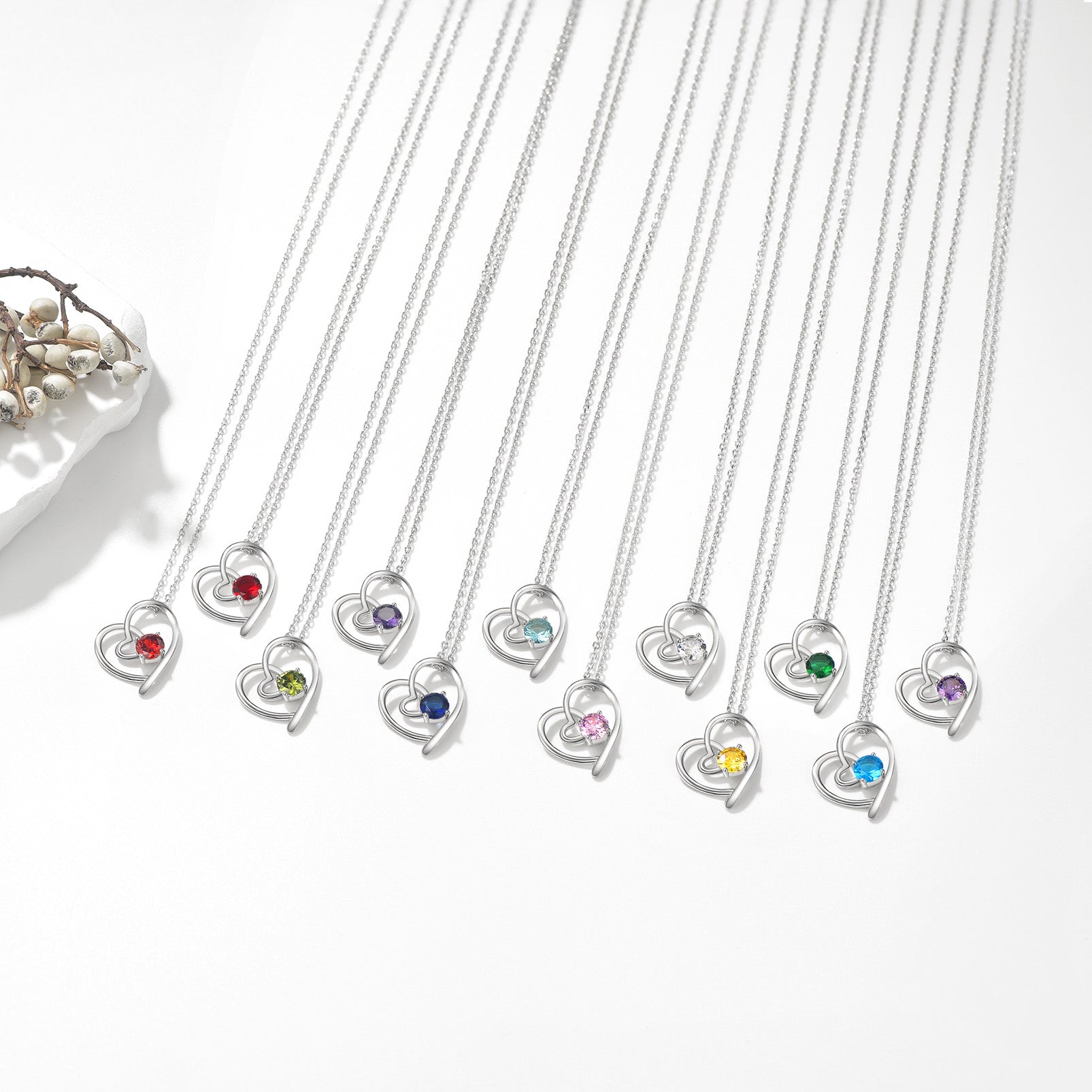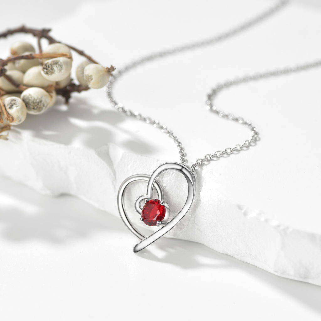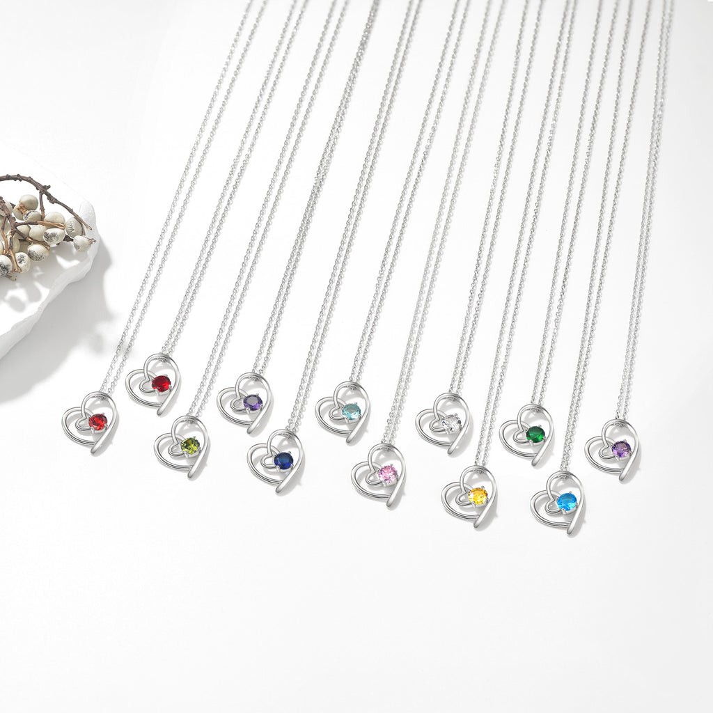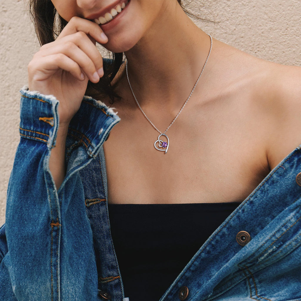 Sterling Silver Birthstone Heart Necklace For Women