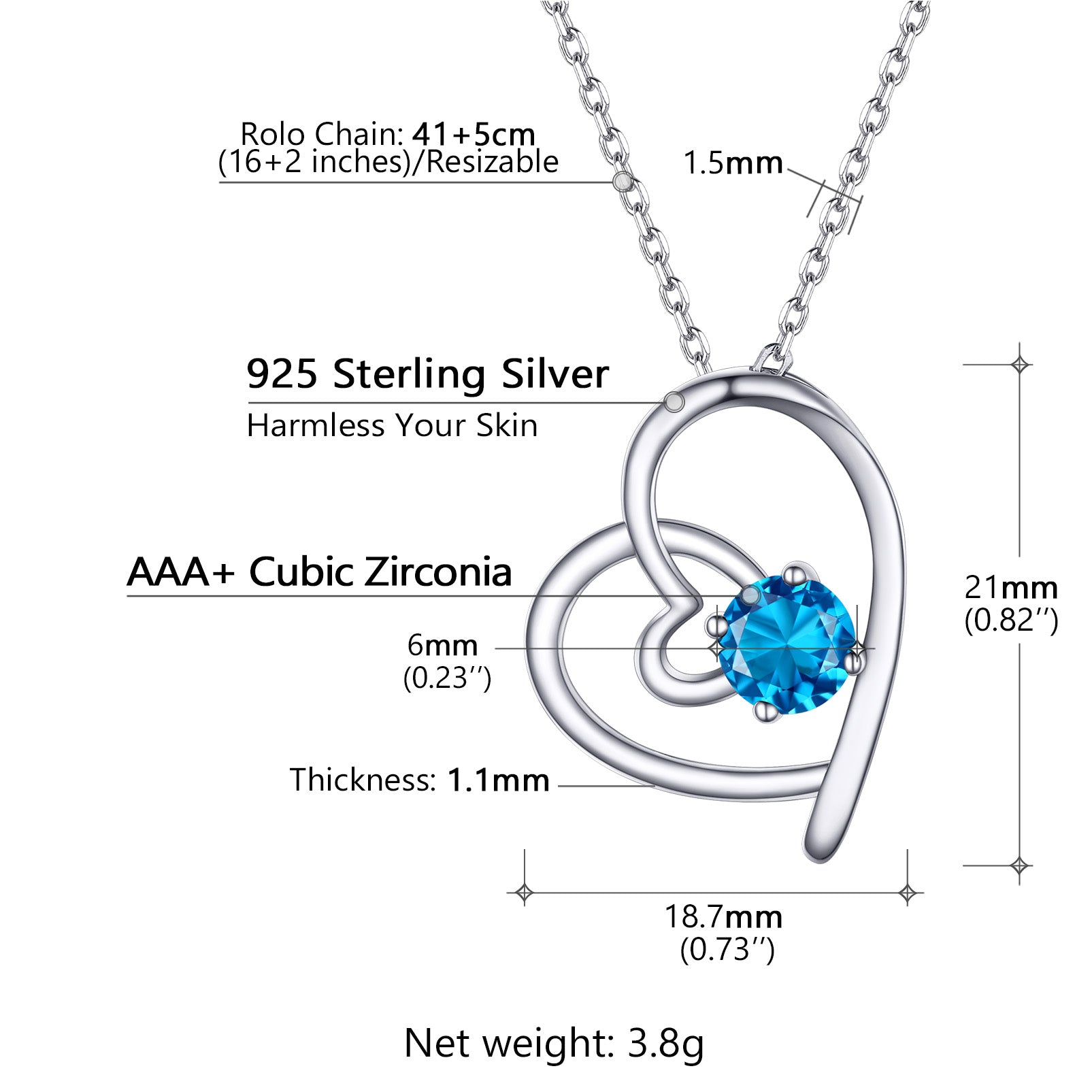 Classic sterling silver birthstone heart necklace for women, round cubic zirconia necklace, nickel free, lead free, is safe for sensitive skin. Suitable for daily wear and those timeless moments such as anniversary, wedding, birthday, Mother's Day, and Christmas. Perfect gift for mother, sister, wife, girlfriend, female friend or treat yourself.