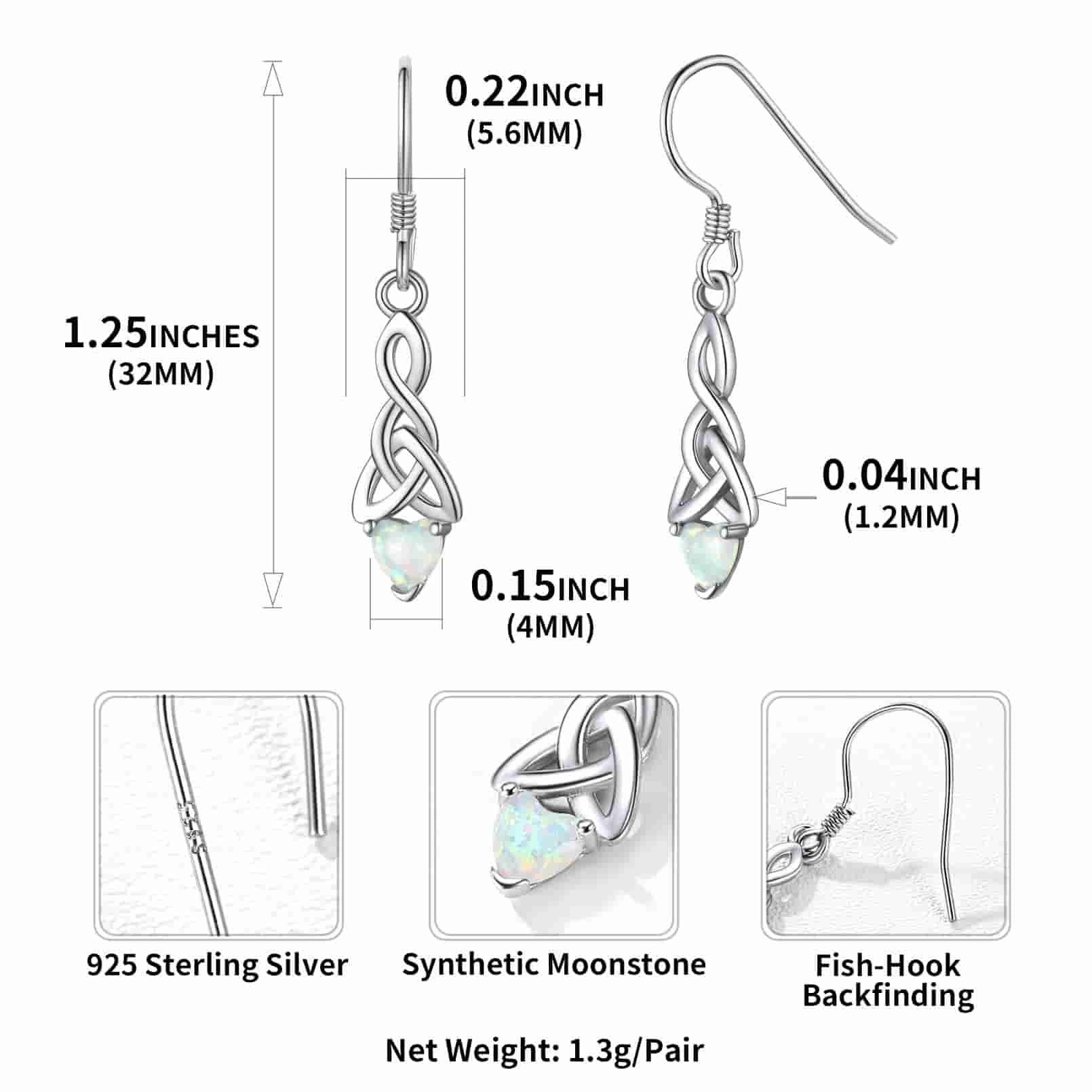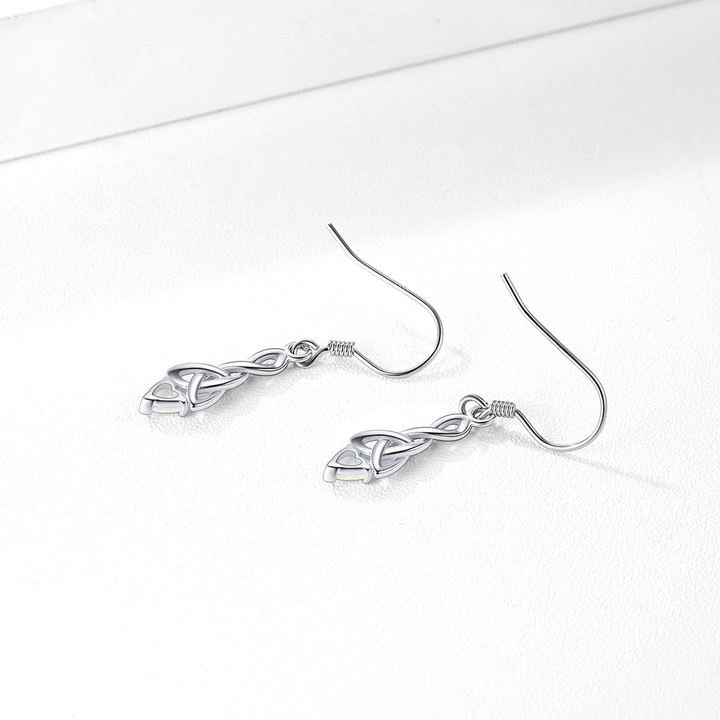 Celtic Knot is a symbol of good luck. The sterling silver Celtic Knot heart opal dangle earrings with fish hook, accentuate your look and catch everyone's eyes in a crowd, they are adorable, lightweight and comfortable to wear.