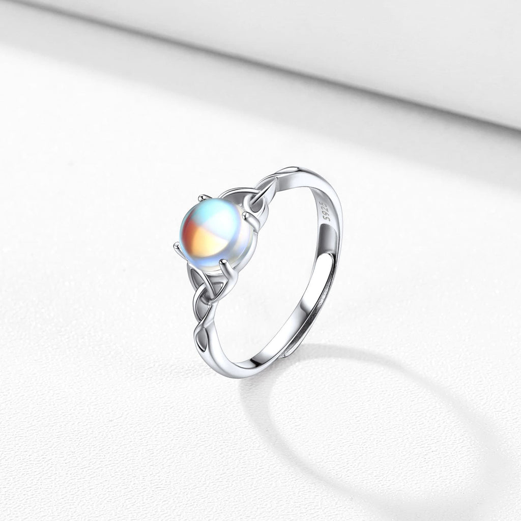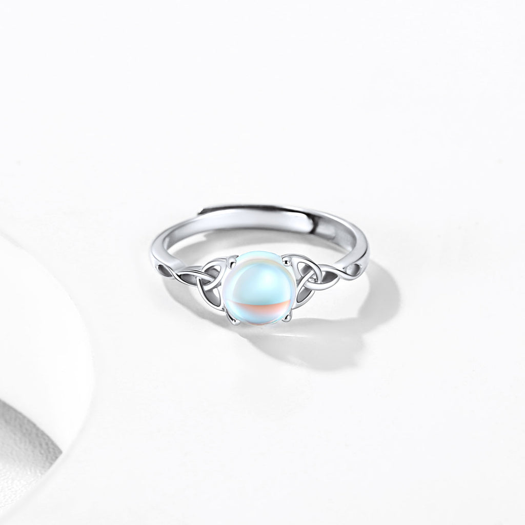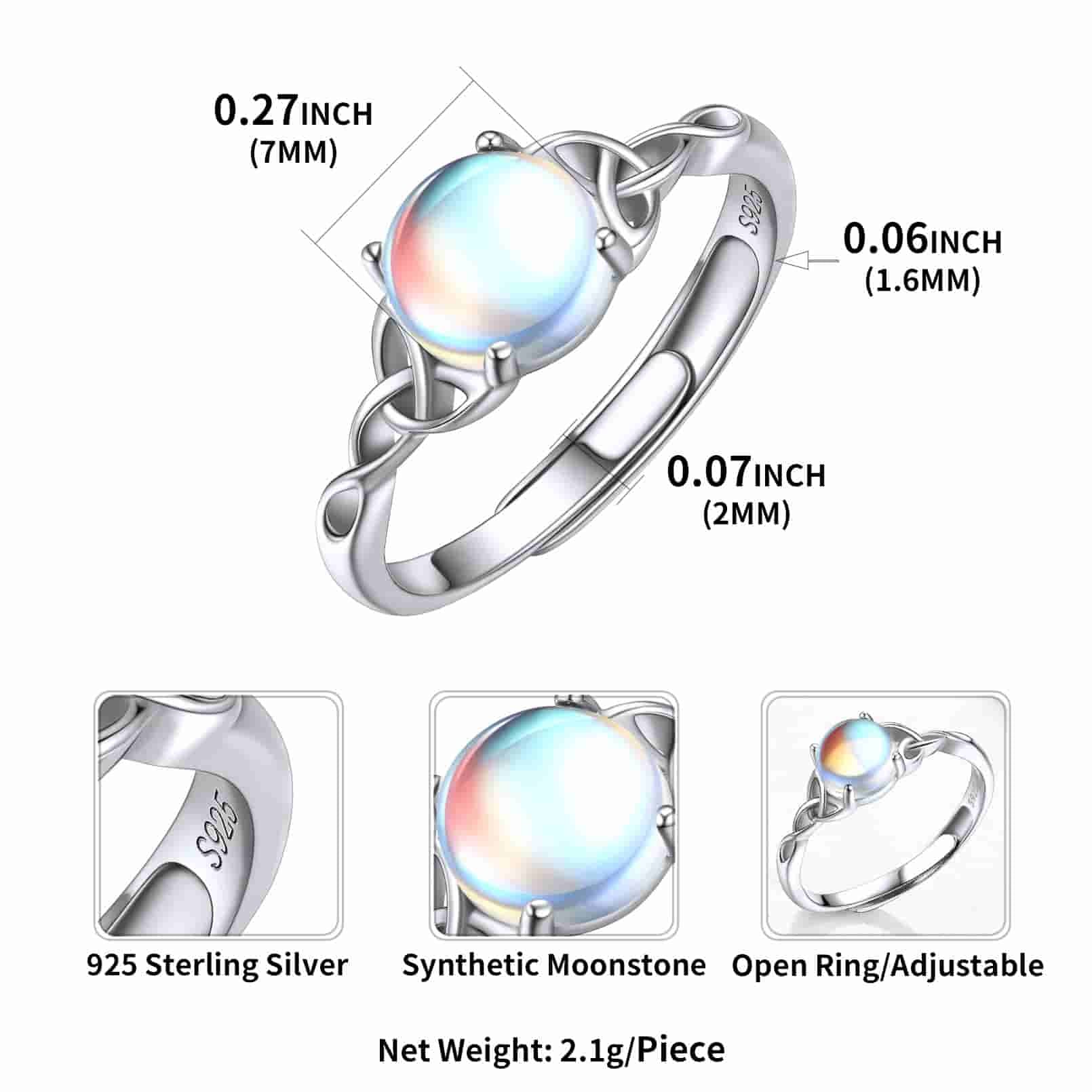 The sterling silver Celtic knot moonstone ring is designed to delight and leave a long-lasting impression, safe for sensitive skin, adjustable size 6#~10# to meet your different needs. Moonstone symbolizes the feminine, intuition, new beginnings and inner wisdom, it protects wearers from mishaps. The Celtic moonstone ring is a good gift for lovers to enhance passion between them.