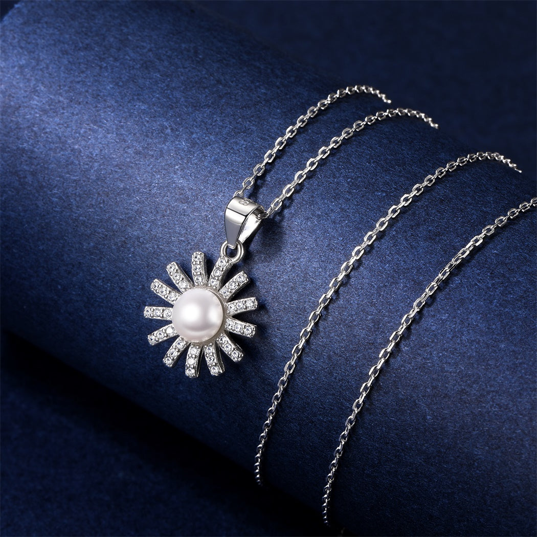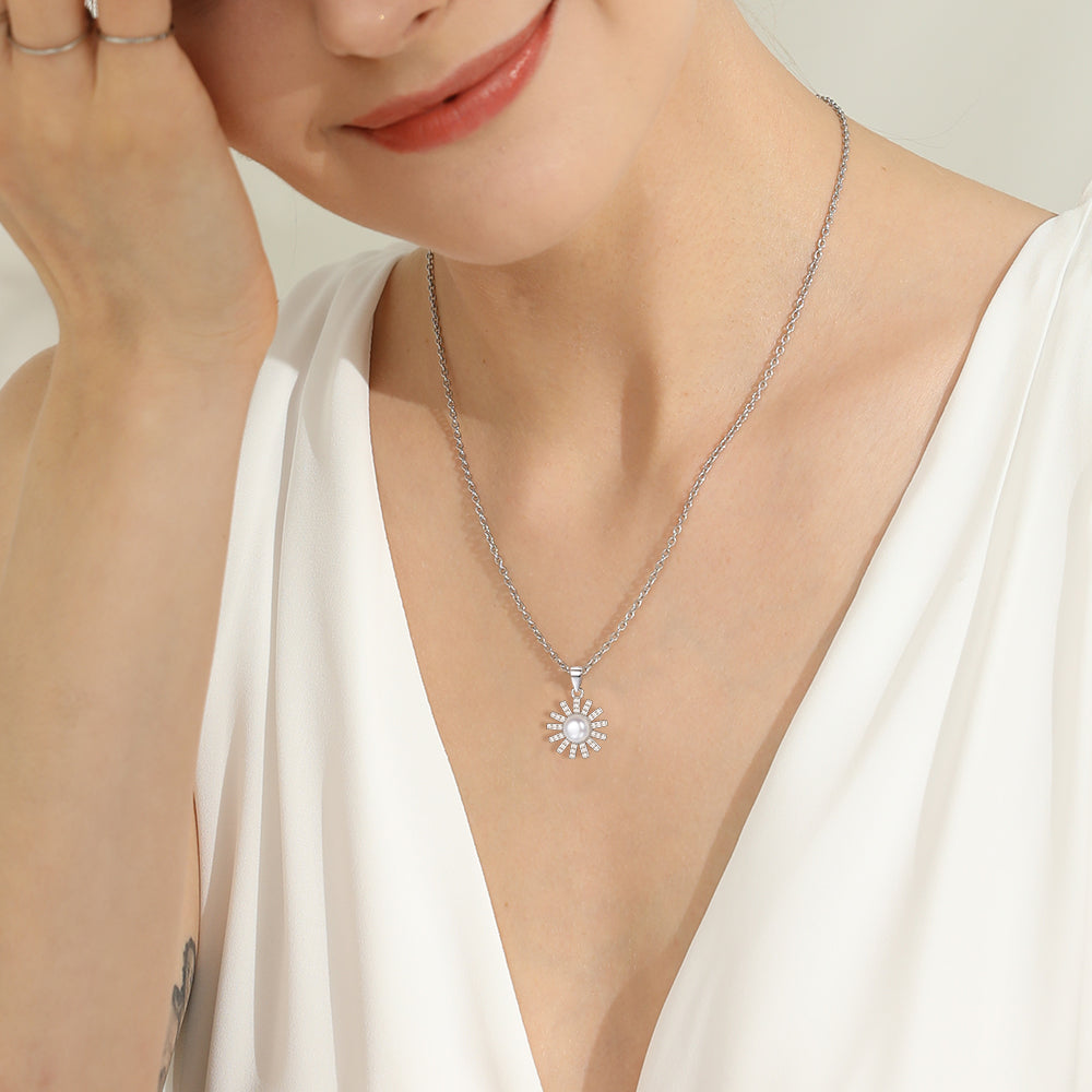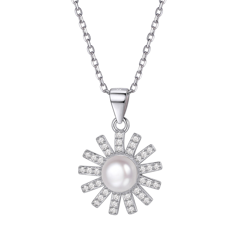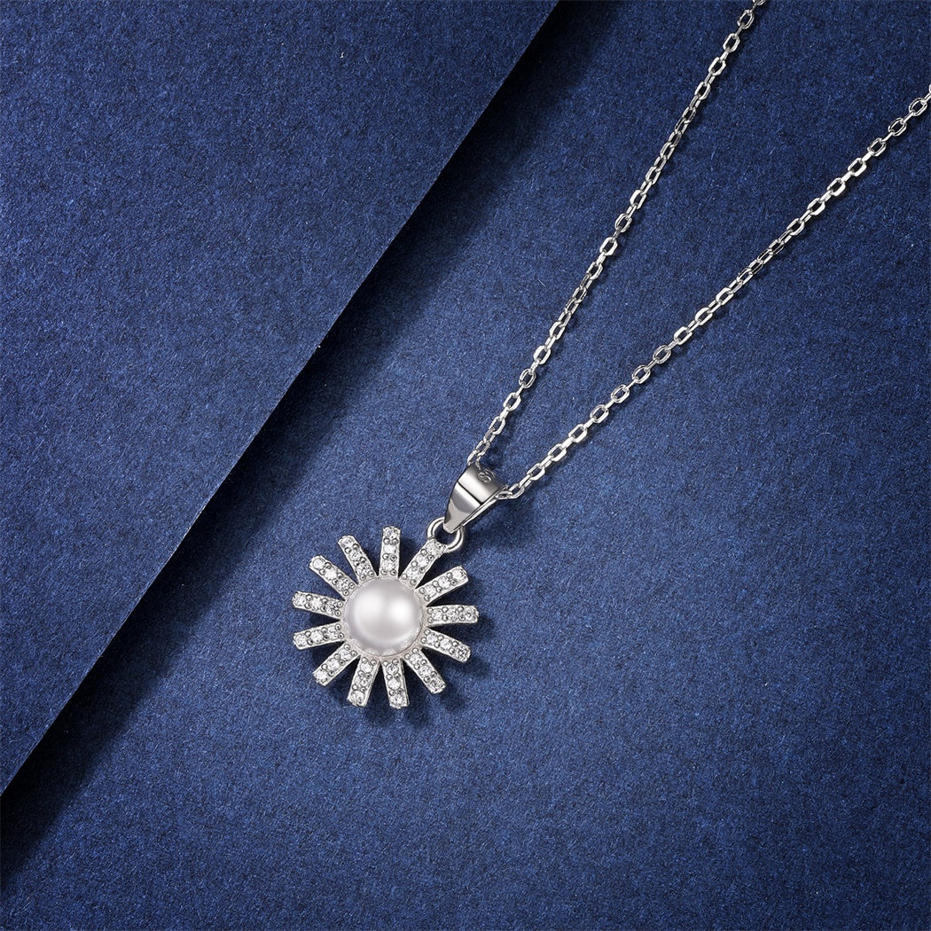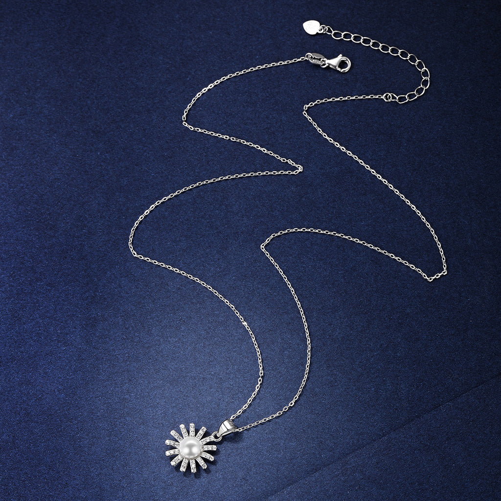Lovely cubic zirconia sun pearl pendant necklace for women, made of 925 sterling silver with high quality synthetic pearl inlaid, nickel free, lead free, is safe for sensitive skin. Add this great necklace to your jewelry collection and match your different decoration needs.
