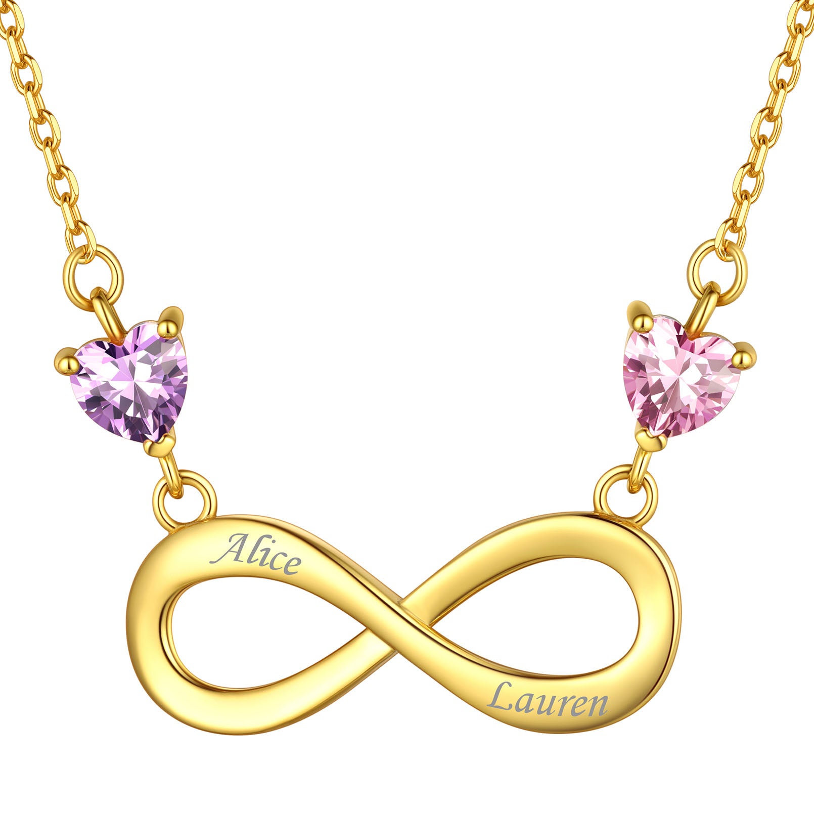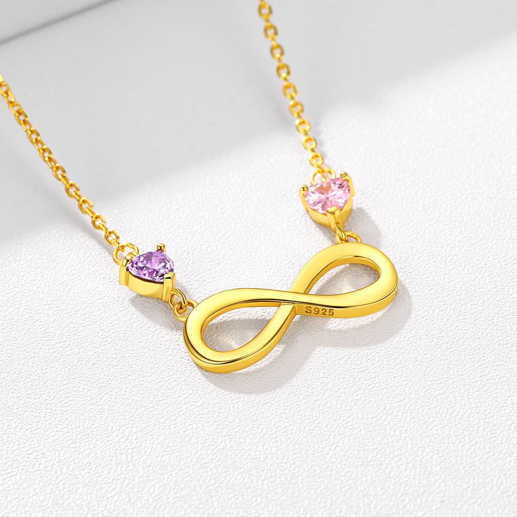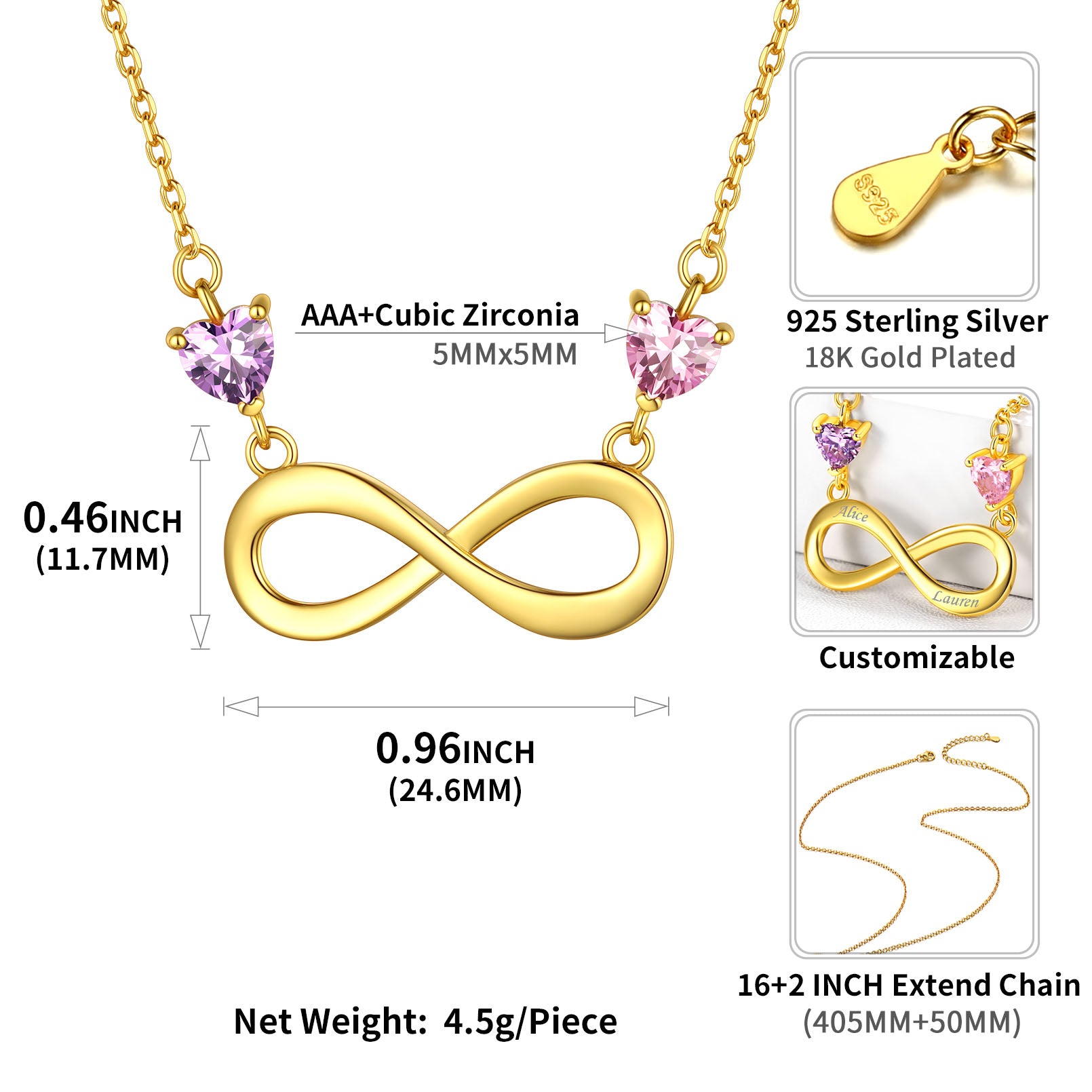 Dainty sterling silver heart birthstone infinity necklace, custom text on the infinity pendant, a perfect collectible jewelry gift for women and girls on anniversary, birthday, Valentine's Day, Christmas, or Mother's Day. Every time you offer someone an infinity pendant, you are indicating that your friendship and love will have no end and will go on forever.