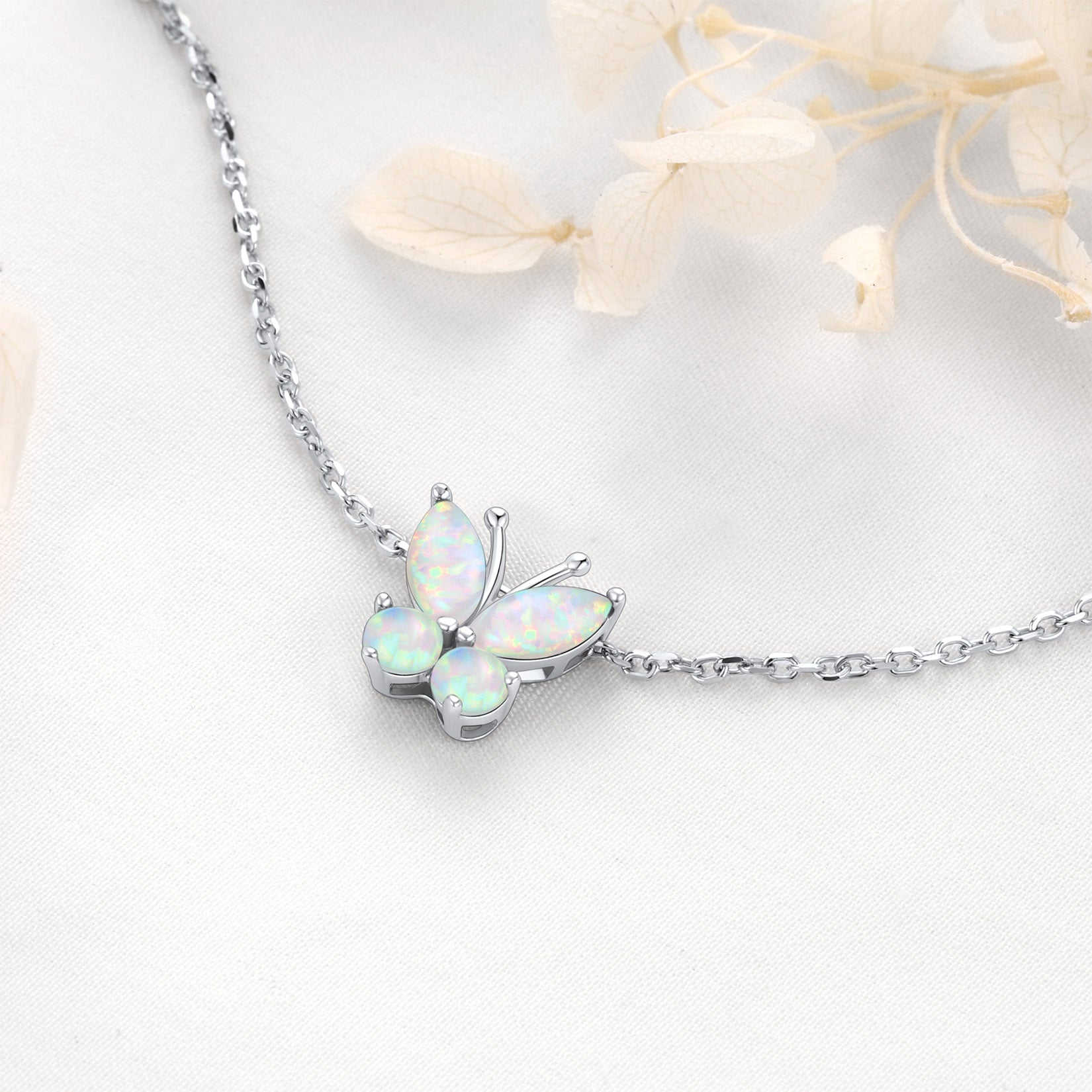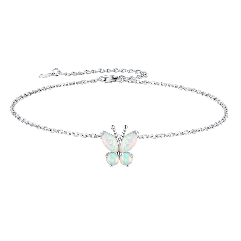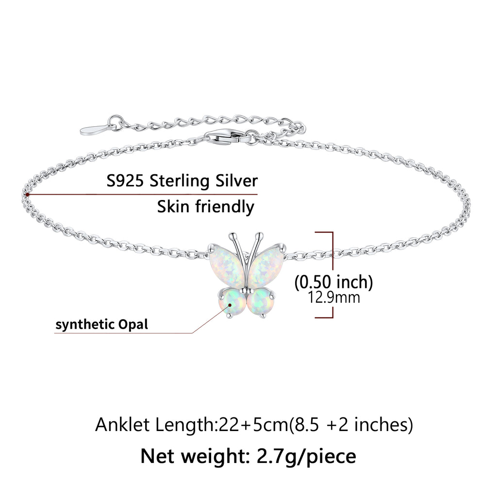 Sparkling sterling silver opal butterfly anklet decors your legs, perfect match with summer beach. Butterfly is a symbol of happiness, freedom and love. Opal is known as October's birthstone representing hope and luck. The cute anklet is an ideal gift choice for young people who love life.