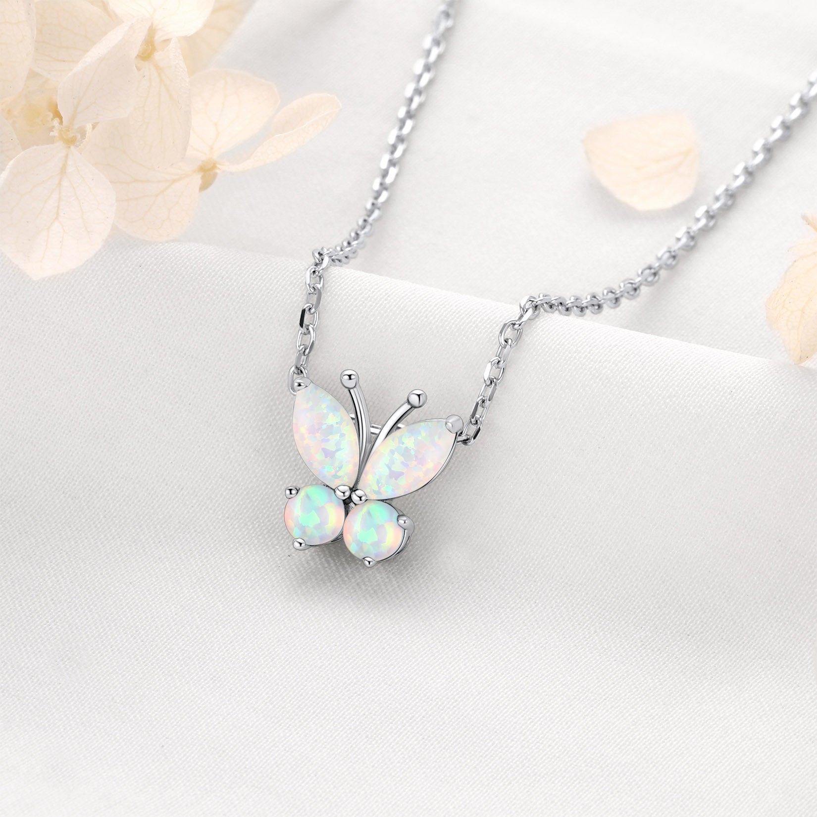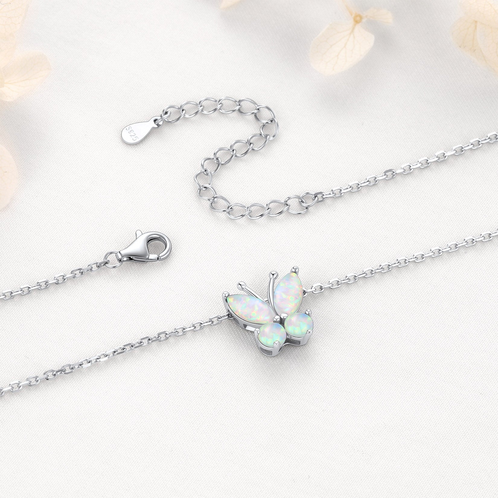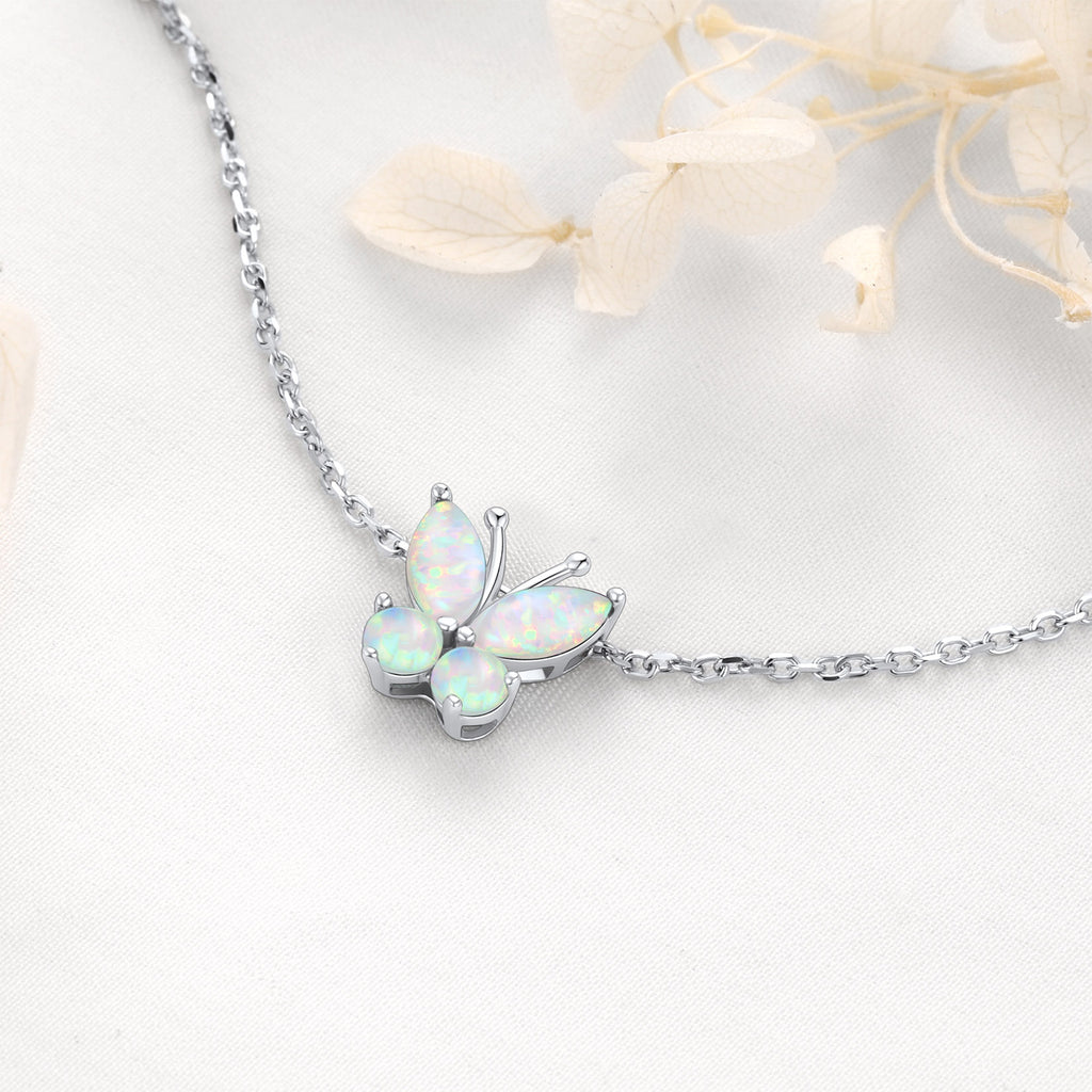 Sparkling sterling silver opal butterfly anklet decors your legs, perfect match with summer beach. Butterfly is a symbol of happiness, freedom and love. Opal is known as October's birthstone representing hope and luck. The cute anklet is an ideal gift choice for young people who love life.