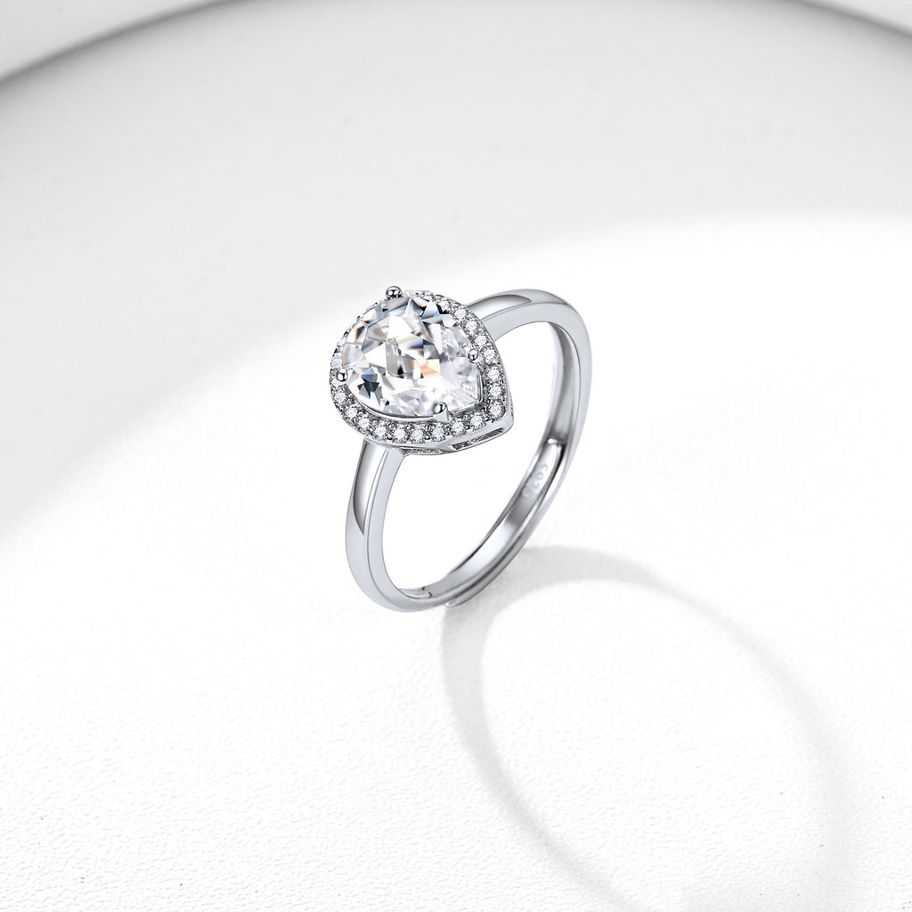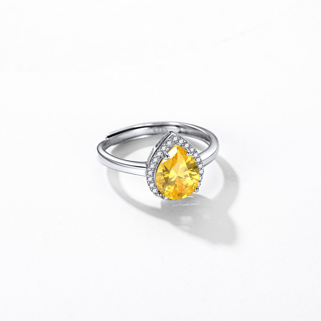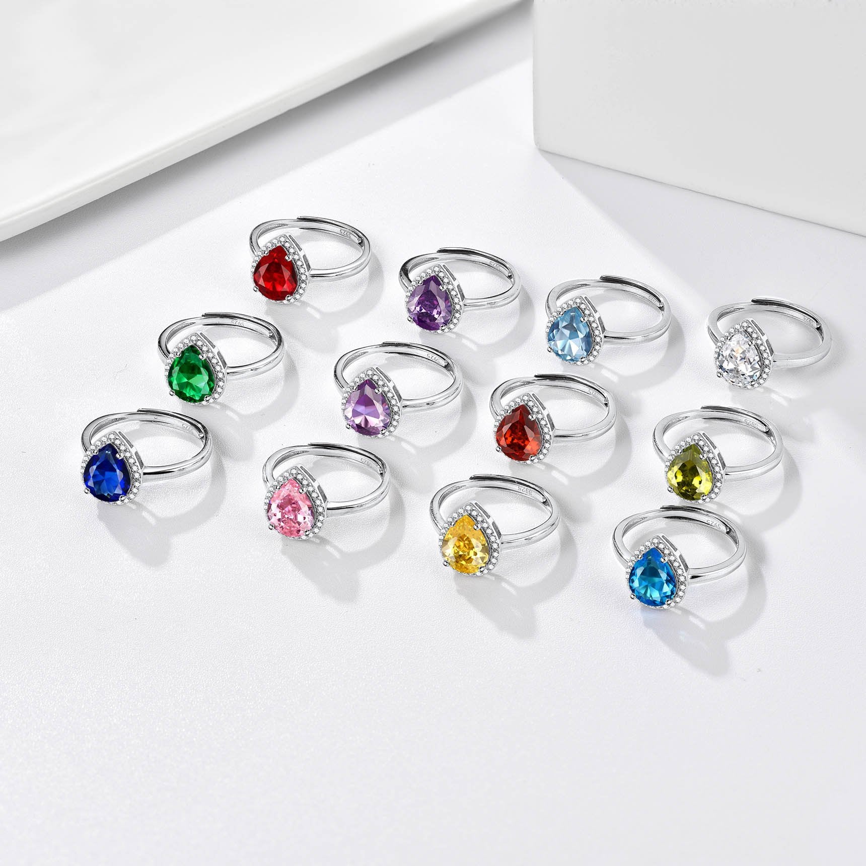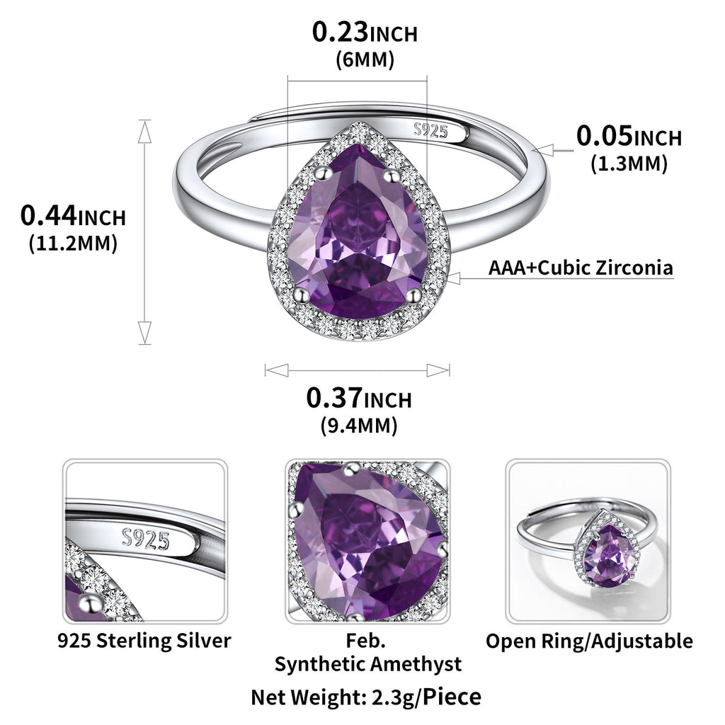 Teardrop promise ring crafted in solid 925 sterling silver, hand-set high-quality cubic zirconia stones, complement the center birthstone, shines bright like a star with a halo ring catching the light at every angle. It's a good alternative for precious wedding rings, elegant and classic design never goes out of style.