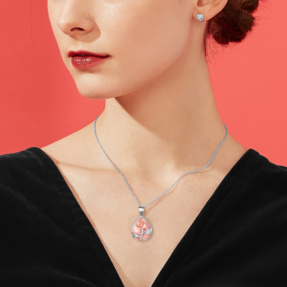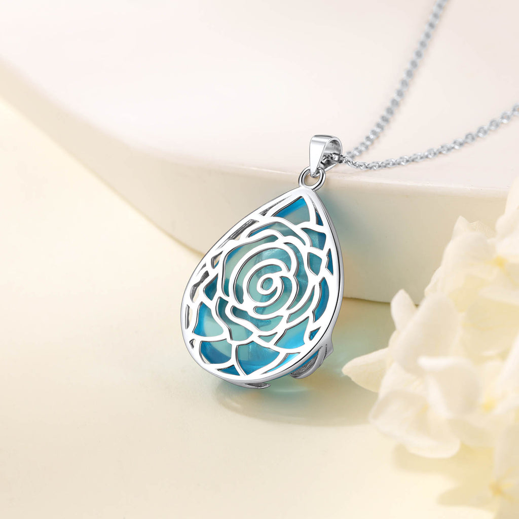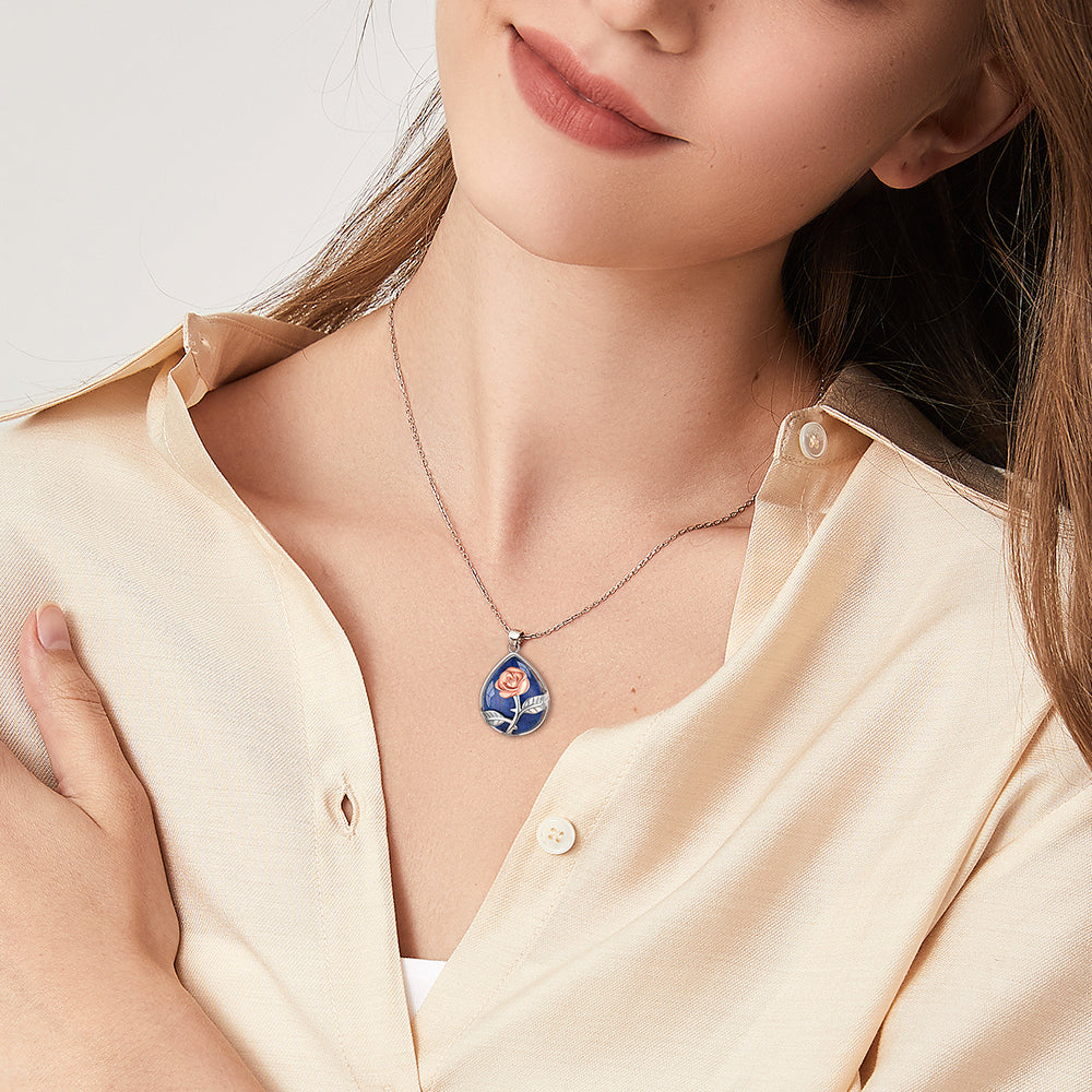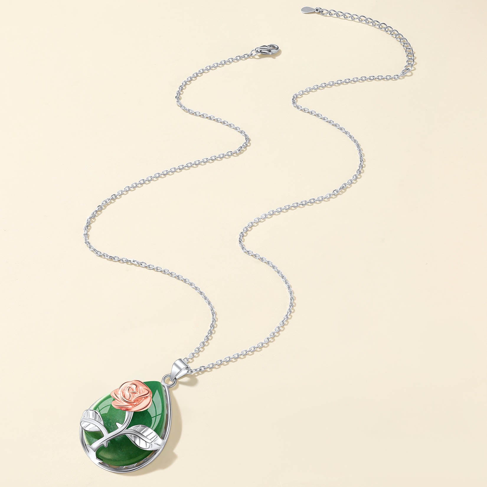 Exquisite sterling silver rose flower water drop healing crystal necklace, rose flower symbolizes romantic love. Love is never-ending. The rose flower birthstone necklace is set with created crystal, each stone is carefully selected and polished to set off your beautiful temperament. Each pendant is made of natural stone, the color may be slightly different from pictures, please subject to the actual product you received.