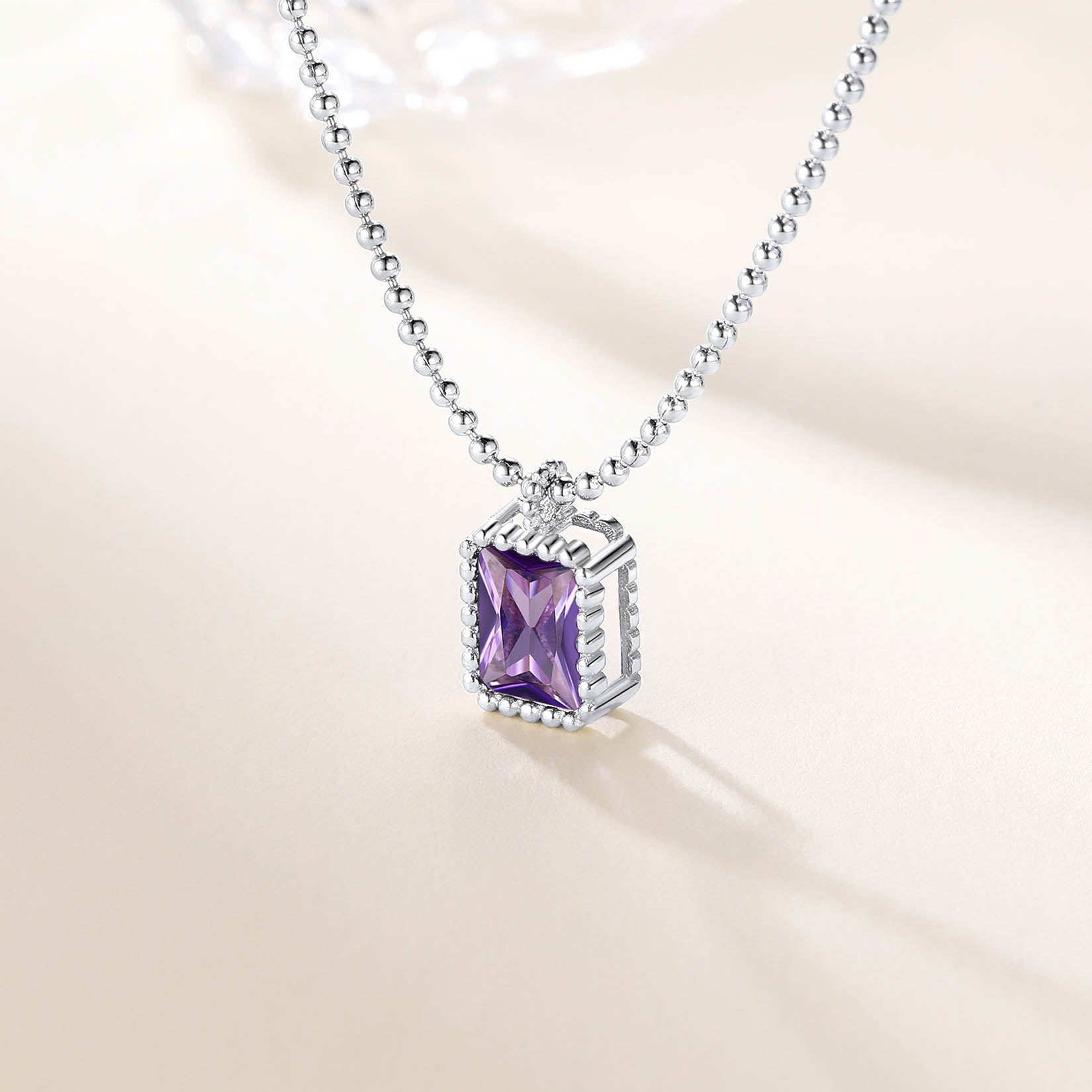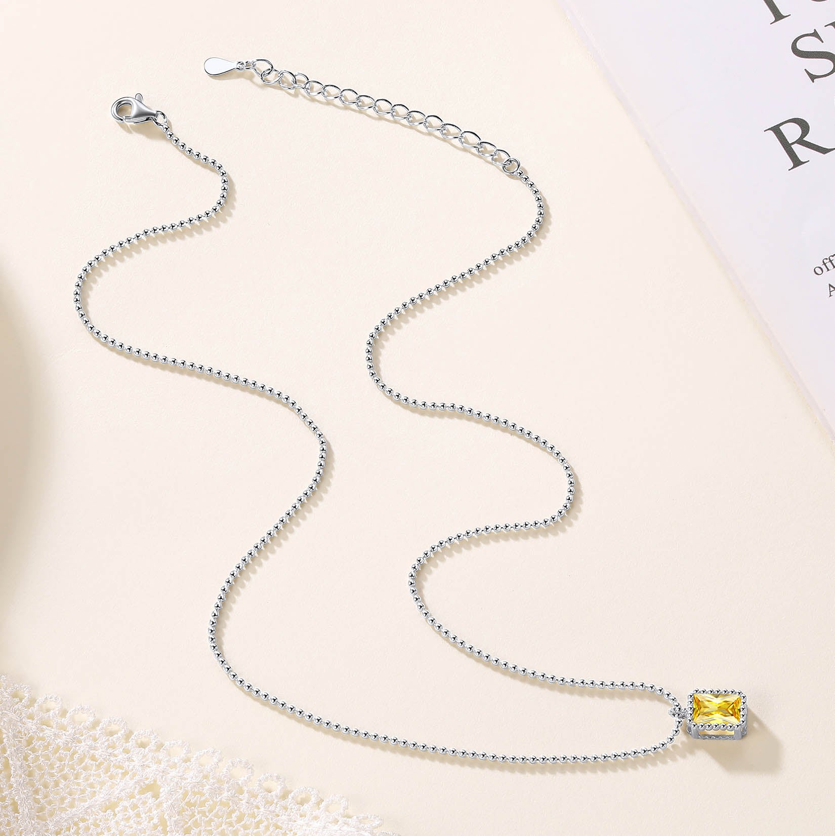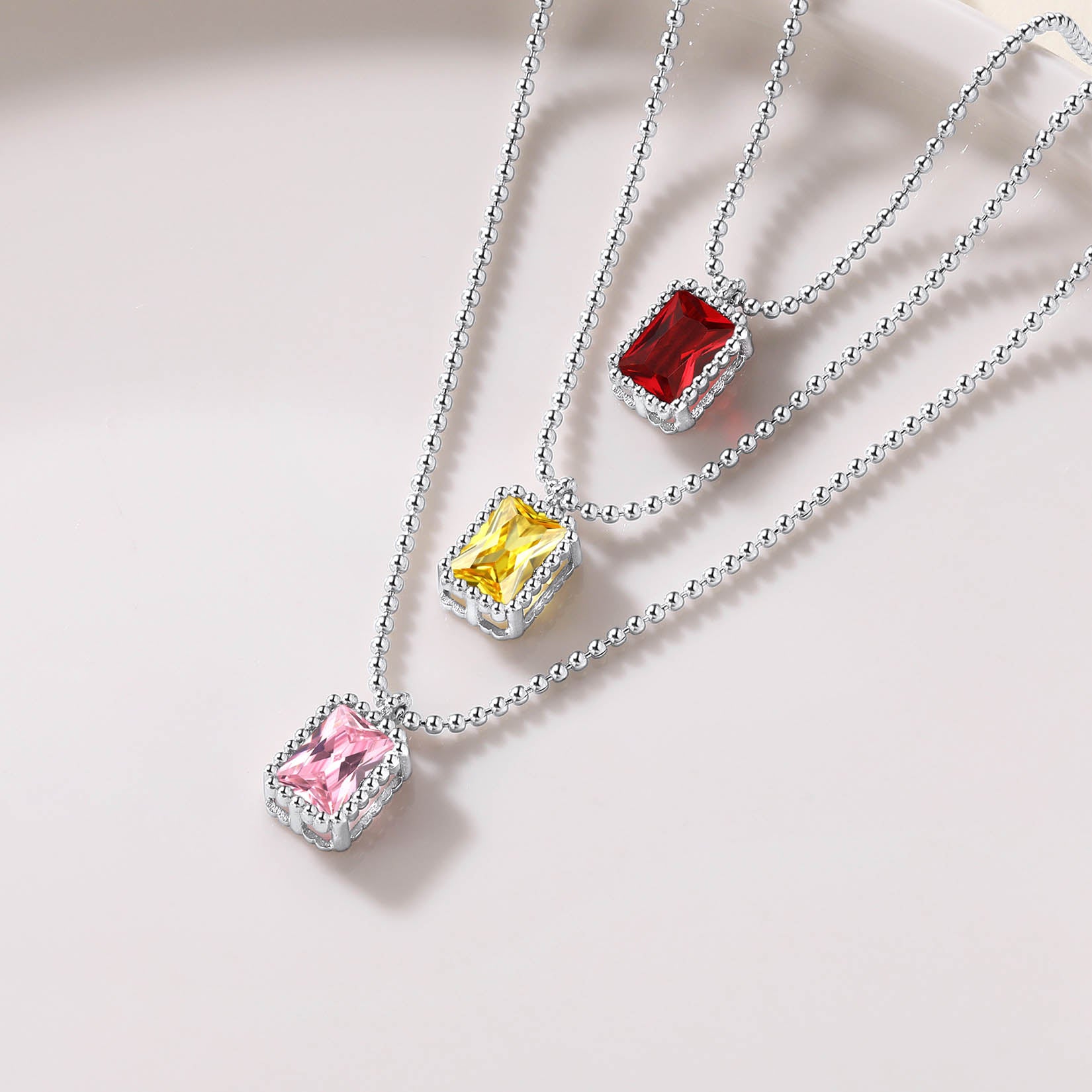 Delicate sterling silver birthstone square sparkle halo necklace for women, halo cubic zirconia necklace, match with bead chain, nickel free, lead free, is safe for sensitive skin. Hand-finished stylish, wear the necklace alone or with the matching earrings, adjustable length, give a voice to your love through unique, hand-crafted jewelry.