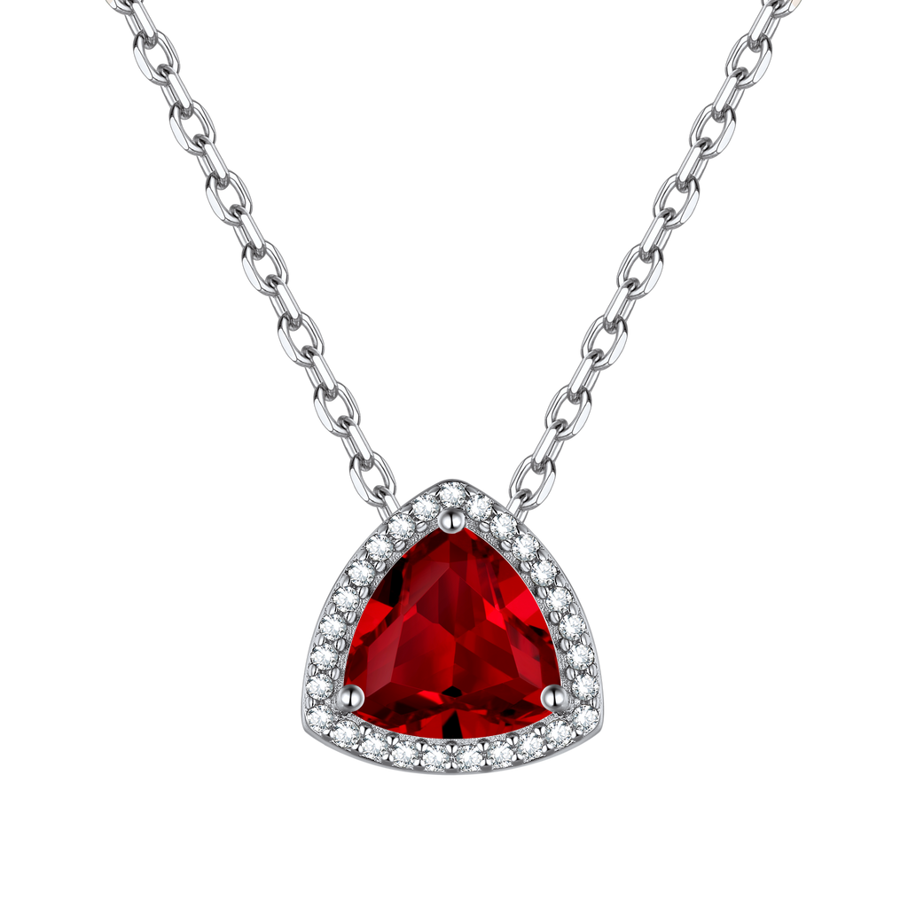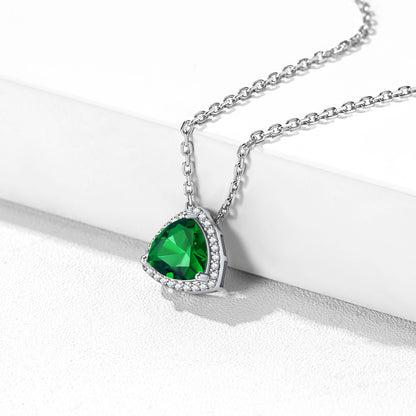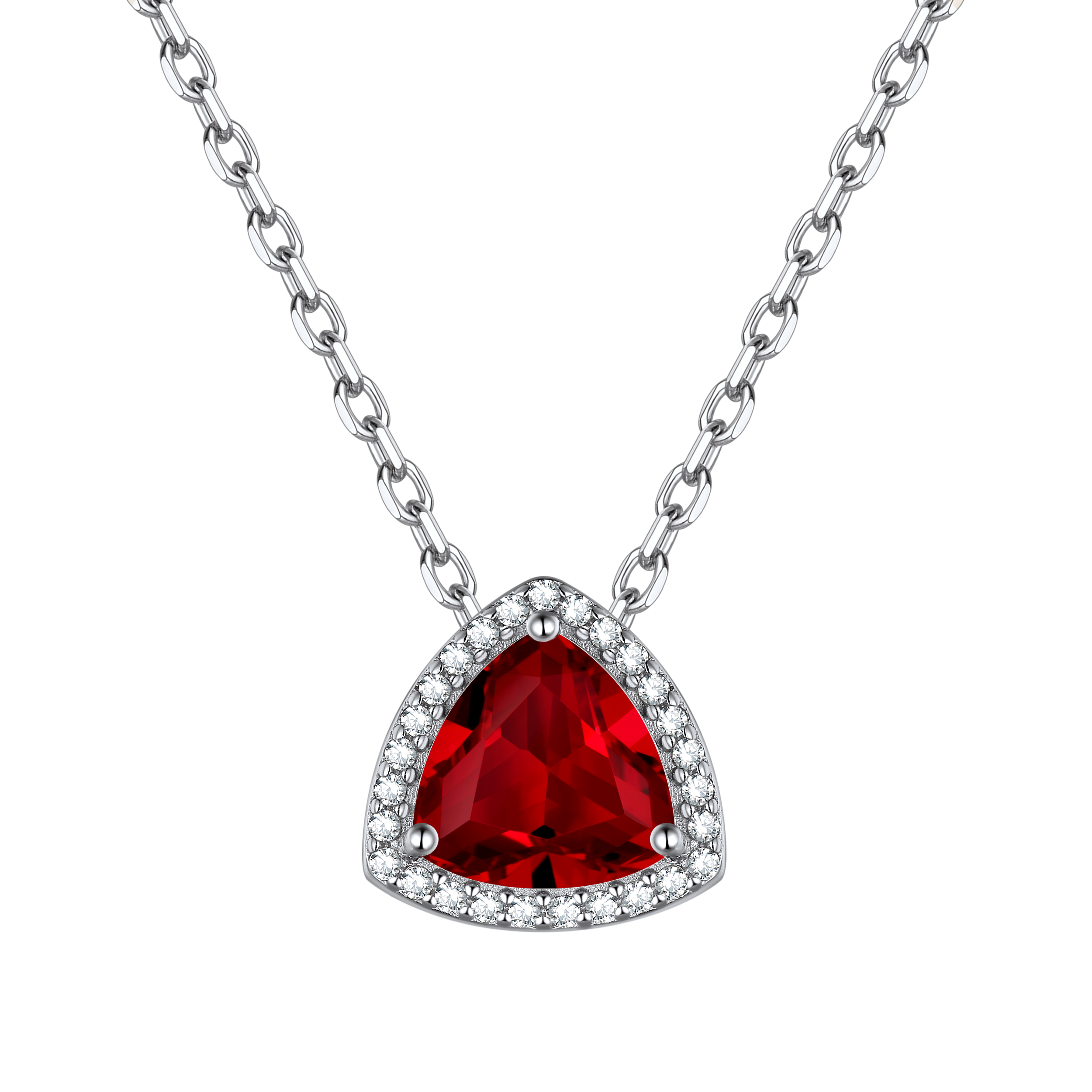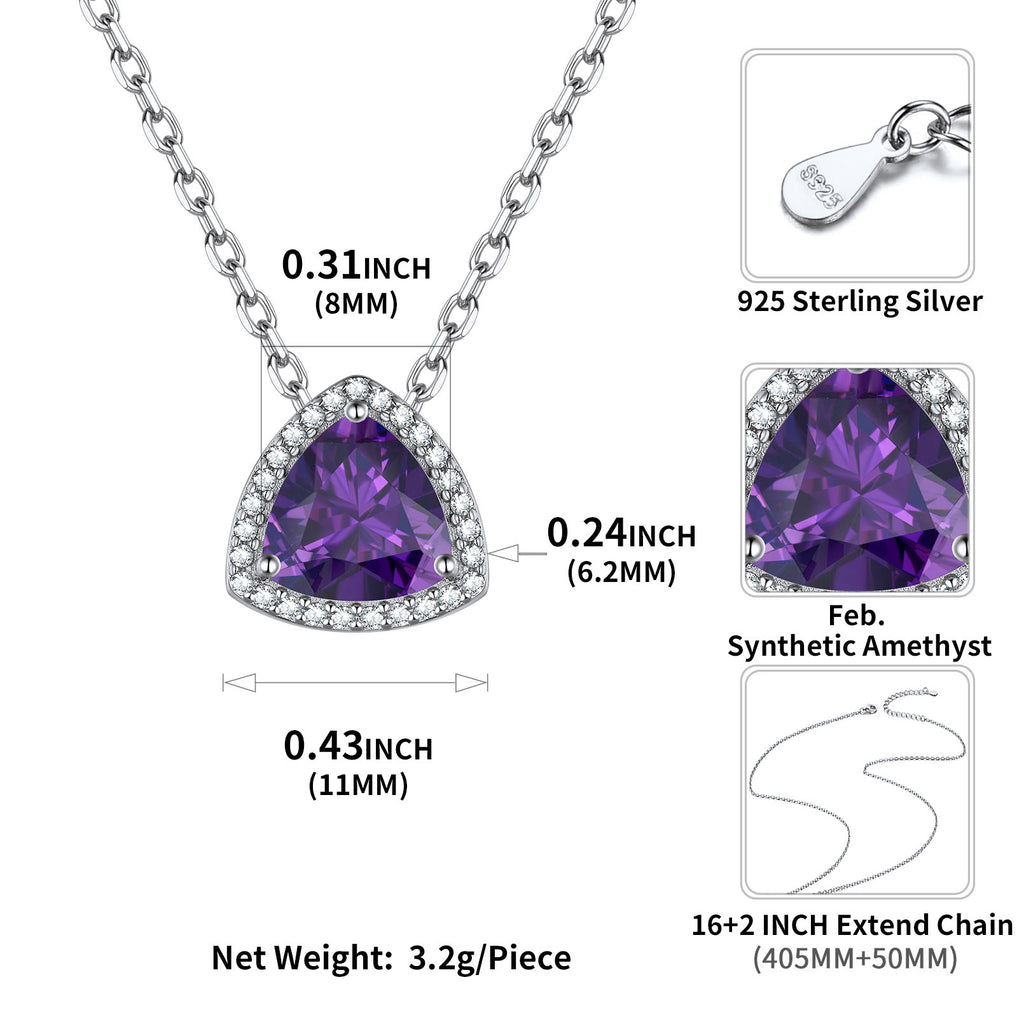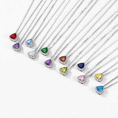 One big shiny triangle shape created birthstone, circled by small cubic zirconia twinkling stones, fashionable and luxurious touch, you can wear this triangle halo birthstone necklace daily or at special events and impress everyone with your unique style.